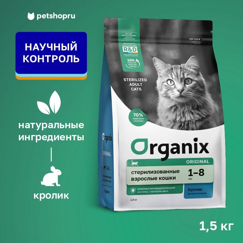 Organix сухой корм для взрослых стерилизованных кошек и кастрированных котов, с кроликом - 1,5 кг информация: