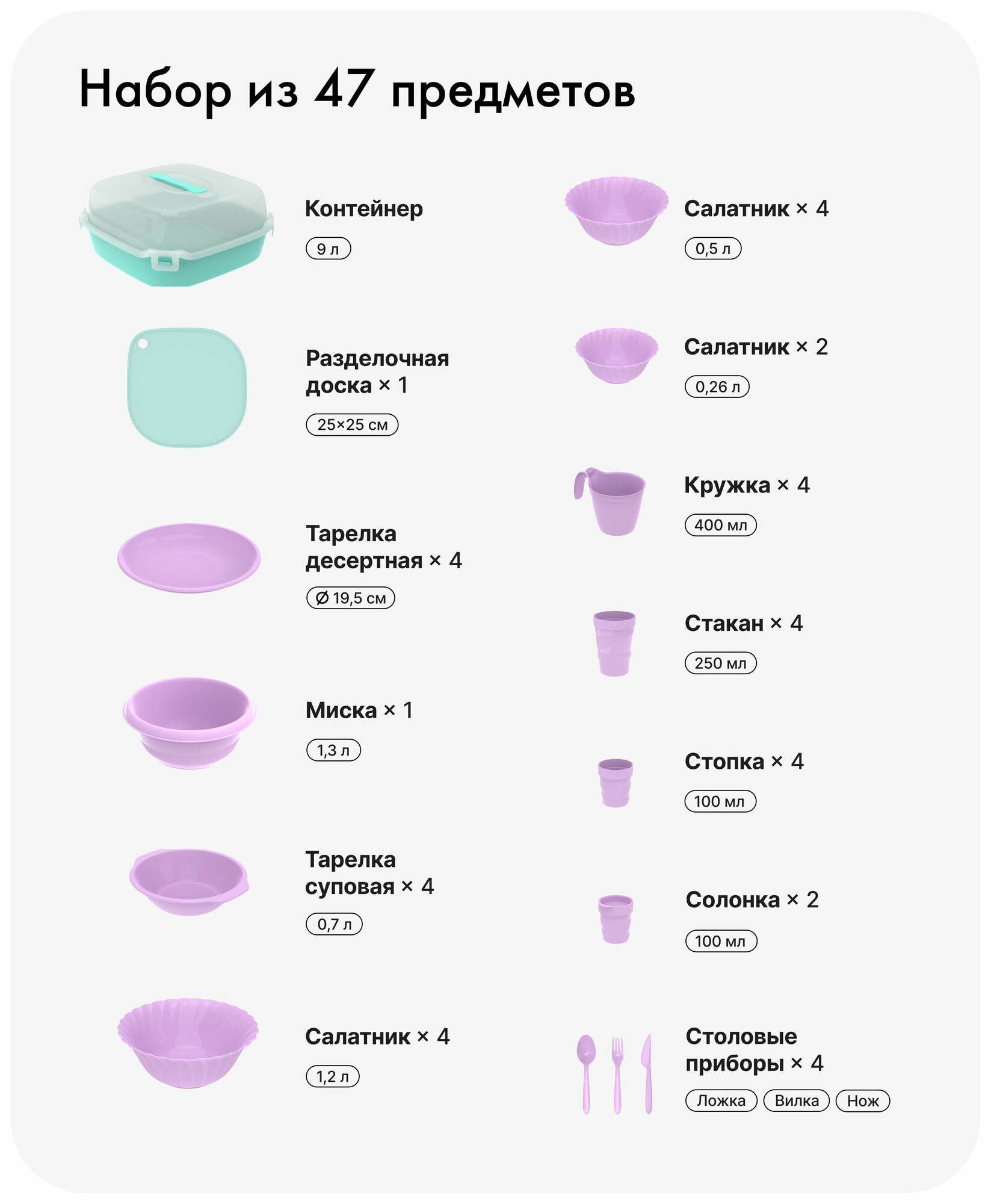 Набор посуды для пикника Альт-Пласт №22, 4 персоны. 47 предметов, пластик информация: