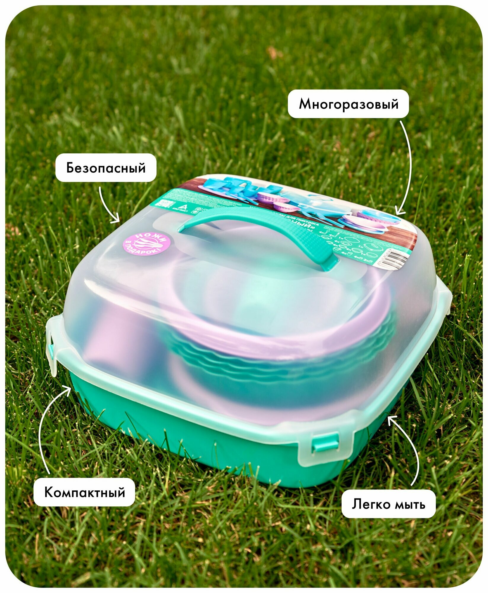 Набор походной пластиковой посуды в контейнере с ручкой для пикника, на шашлыки, для туризма, барбекю для 4 человек 17 предметов №24 АП 783 Пятница