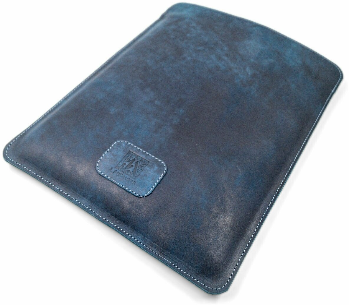 Кожаный чехол - карман J.Audmorr для Macbook 14 Pro (2021) / Ноутбука 13,3"-14", с размерами до 325 х 225 х 18 мм, синий, NewBridge 13.3 Navy