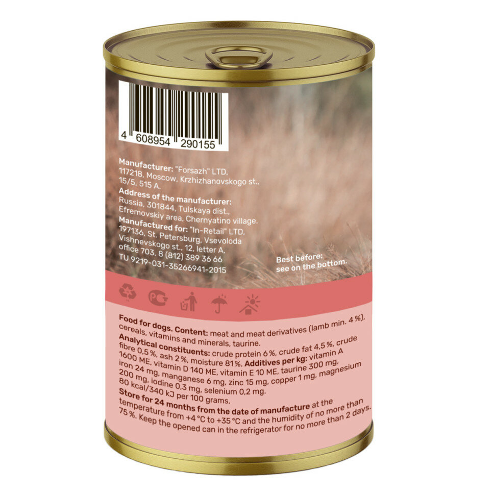 Консервы для собак Свежий ягненок, 415 гр