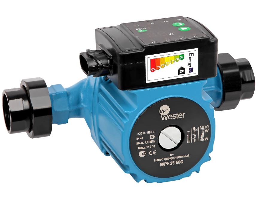 Циркуляционный насос WPE 32-60 G 180 мм, 45 Вт, с частотником AUTOadapt энергоэффективный, 6 м, 3.4 м3/час, с гайками 220 В Wester 0-18-0096 информация: