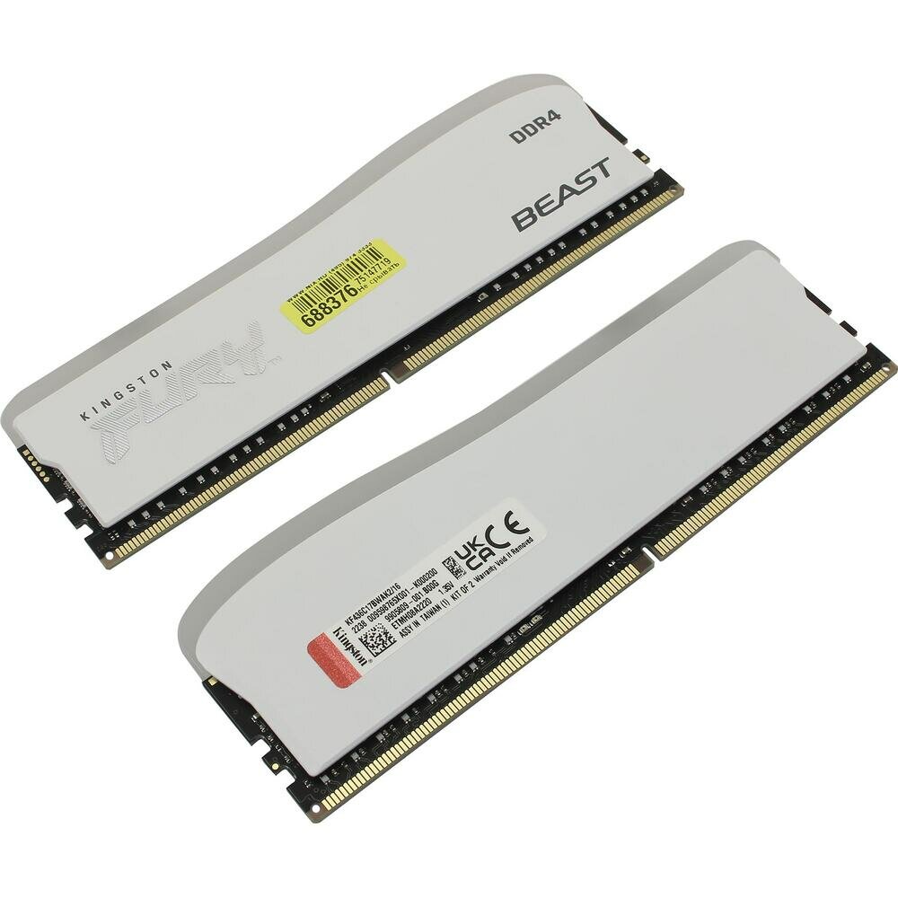 DDR 4 DIMM 16Gb PC28800, 3600Mhz, Kingston FURY Beast White RGB SE CL17 (Kit of 2) (KF436C17BWAK2/16) (retail) 7 300 ₽