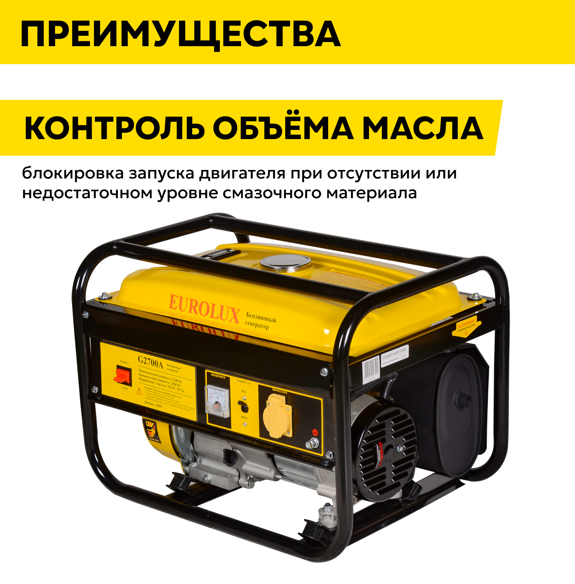 Генератор бензиновый EUROLUX G2700A, 2.2 кВт, ручной стартер информация: