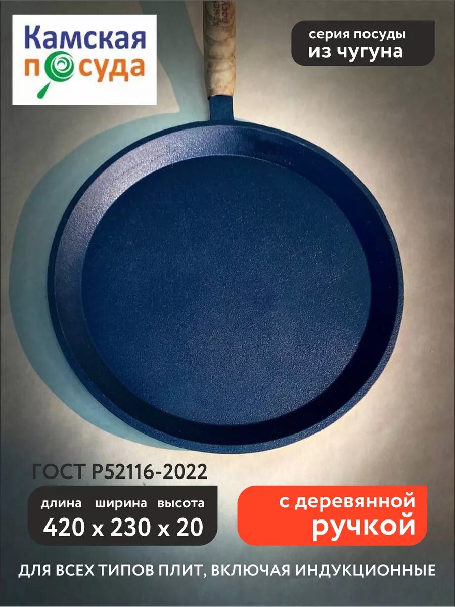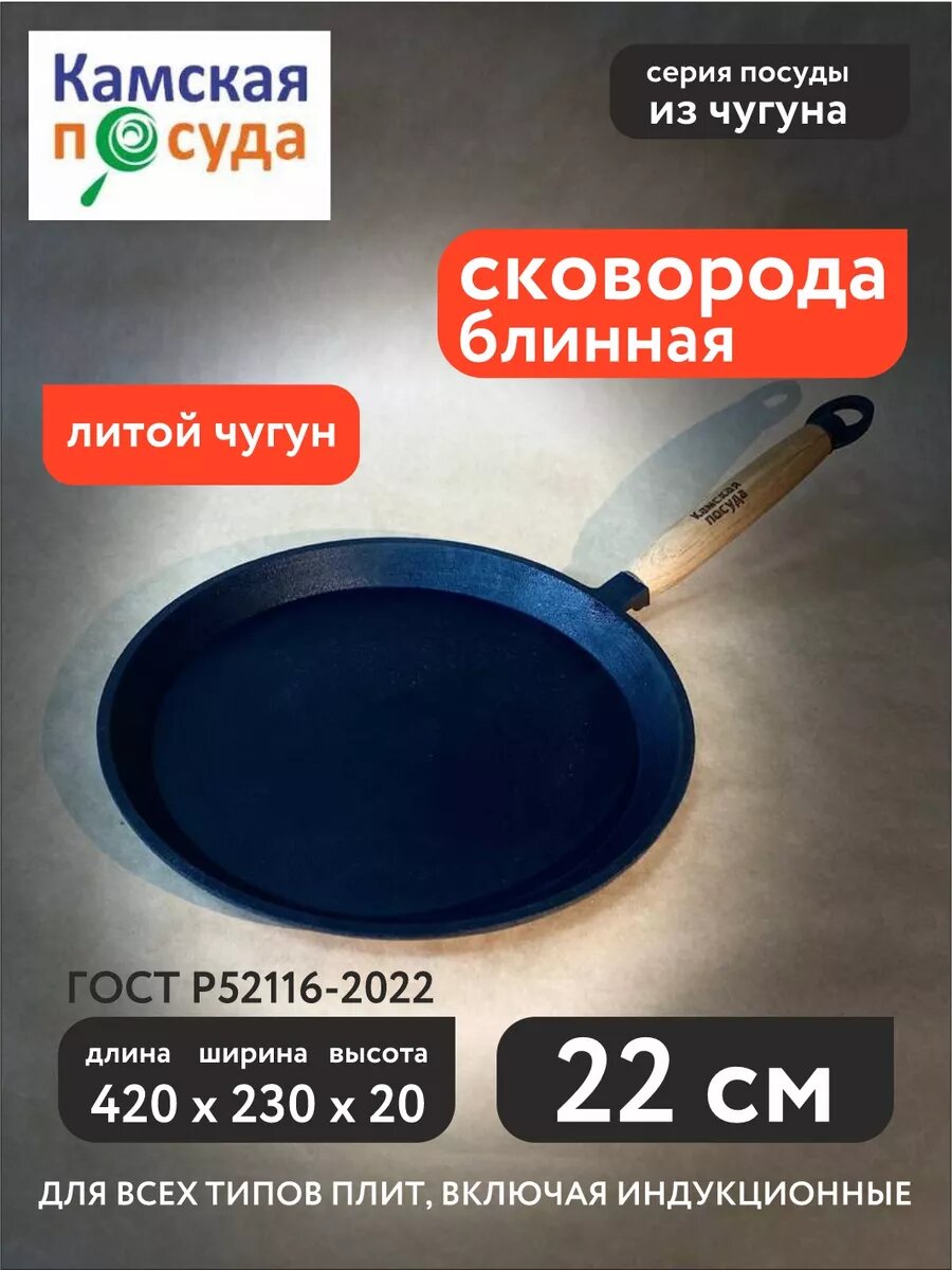 Сковорода блинная Камская посуда бл220, съемная ручка