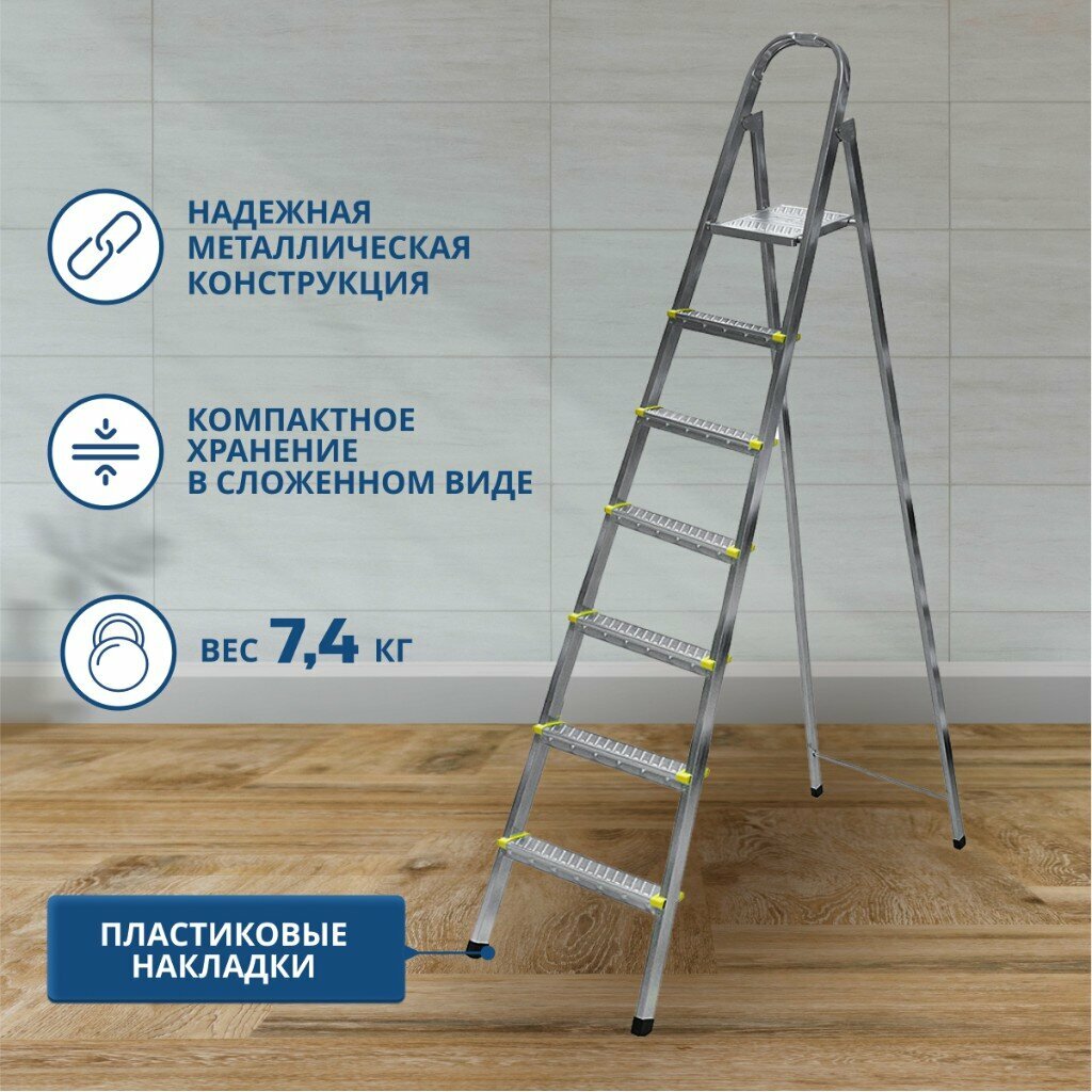 10 цен на Стремянка 1 секция, 7 ступеней, металл, 1.53 м, 150 кг, Amigo, ЛС1007