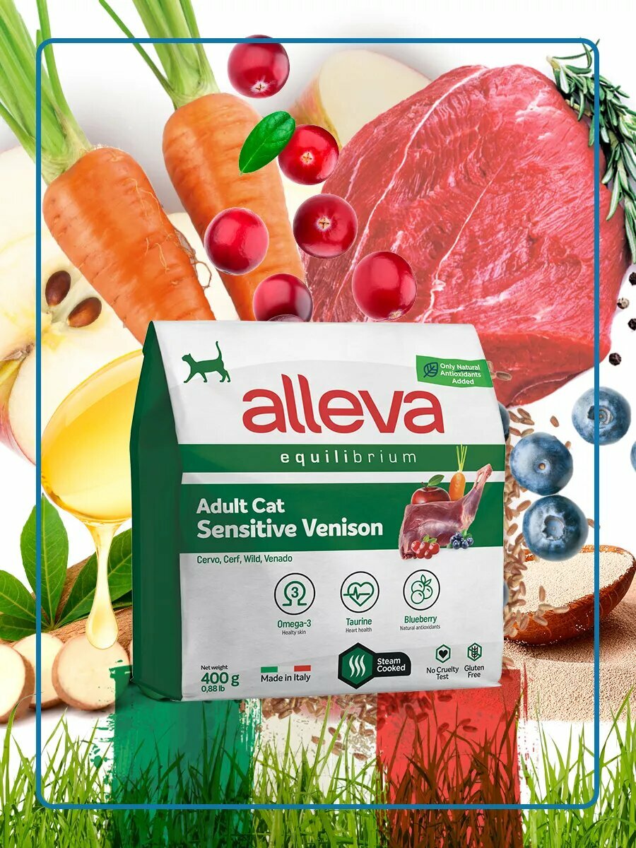 ALLEVA Полнорационный корм SENSITIVE для взрослых кошек с олениной. 0,4 кг. х 4 шт. информация: