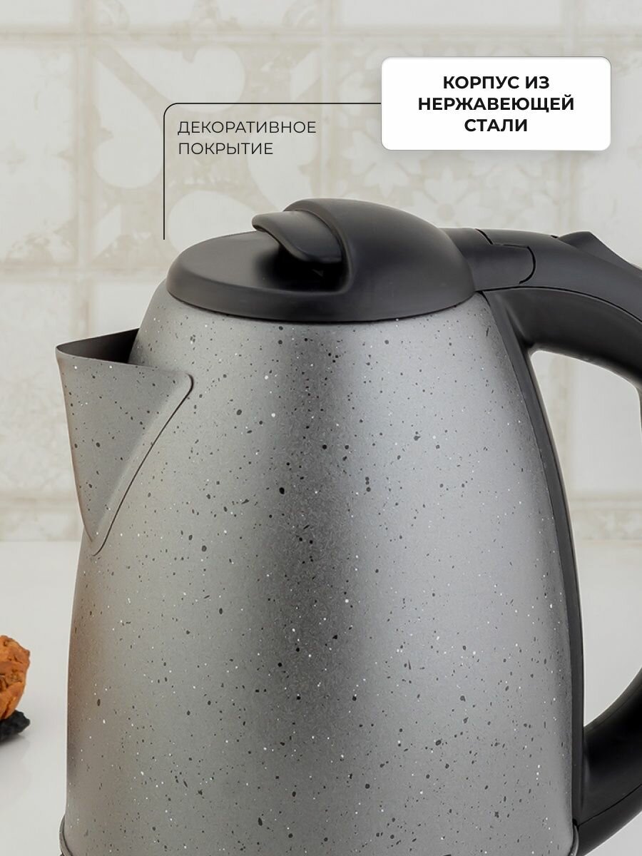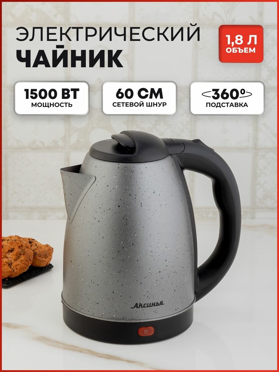 Чайник электрический аксинья КС-1008 1,8 л, 1500 Вт, серый