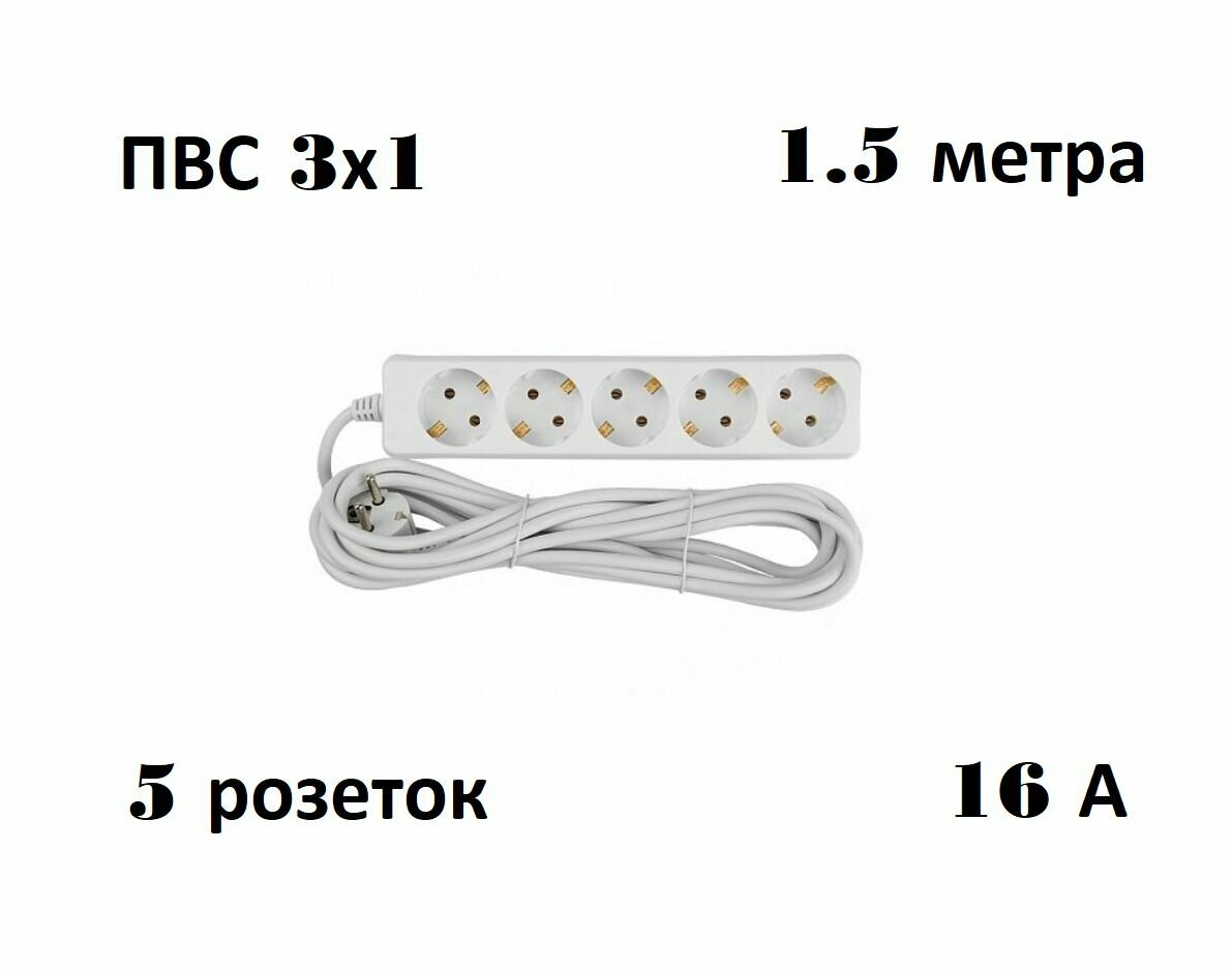 Удлинитель сетевой (фильтр) 5 розеток 1.5 метра (с заземлением)