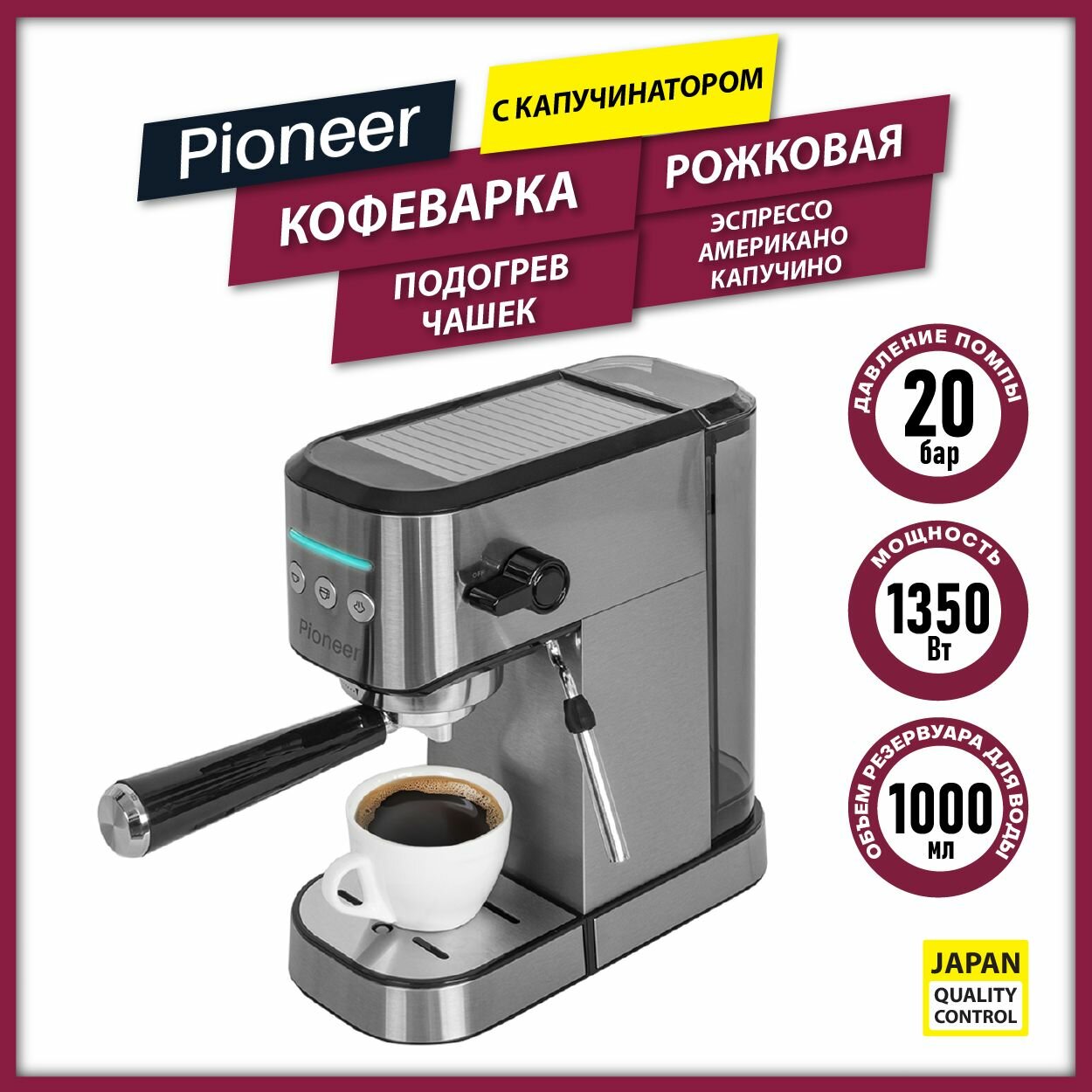 Отзывы на Кофеварка Pioneer рожковая, Мощность 1350 Вт, давление 20 бар (Pioneer CM108P)