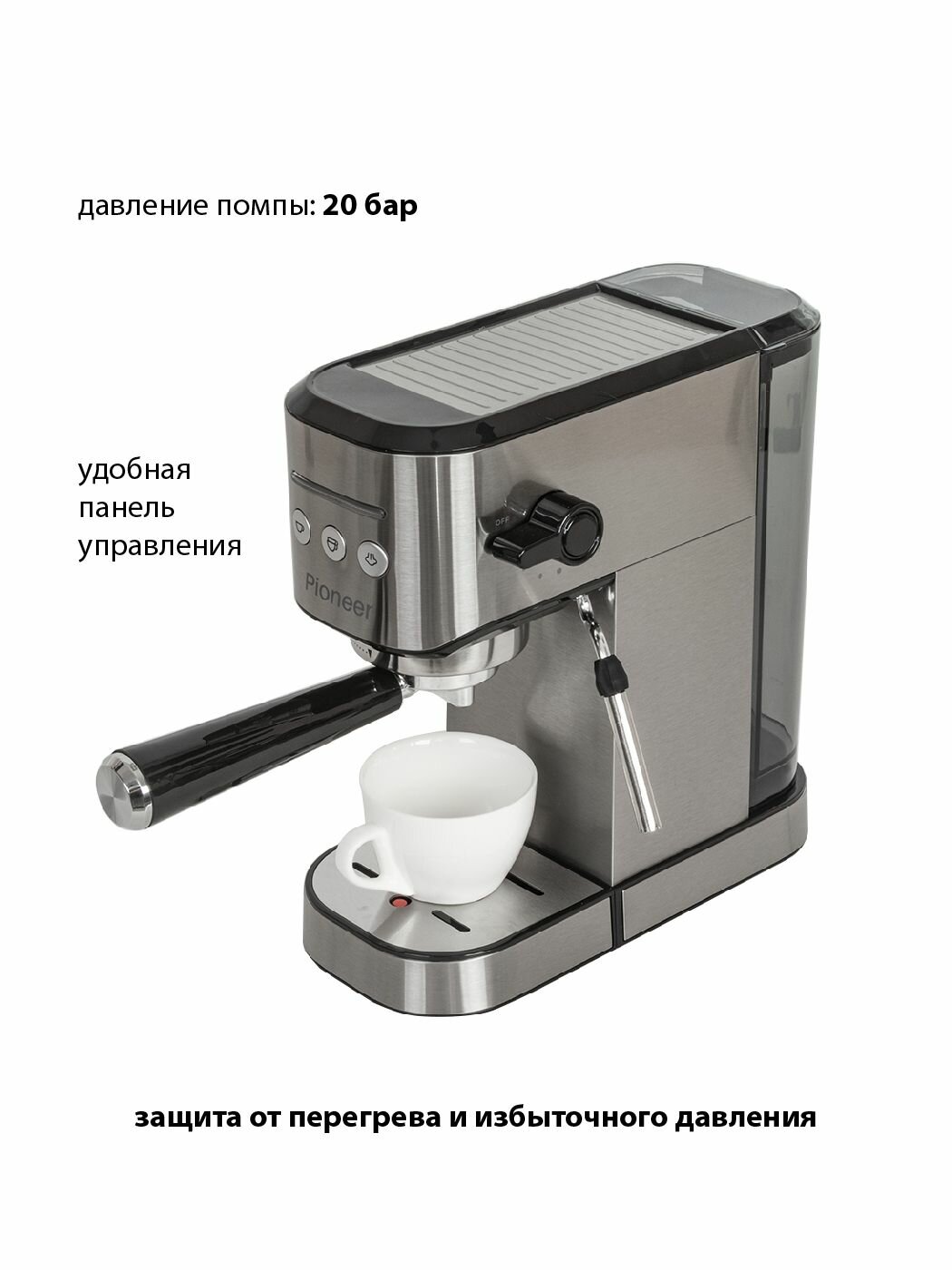 Кофеварка Pioneer рожковая, Мощность 1350 Вт, давление 20 бар (Pioneer CM108P) информация: