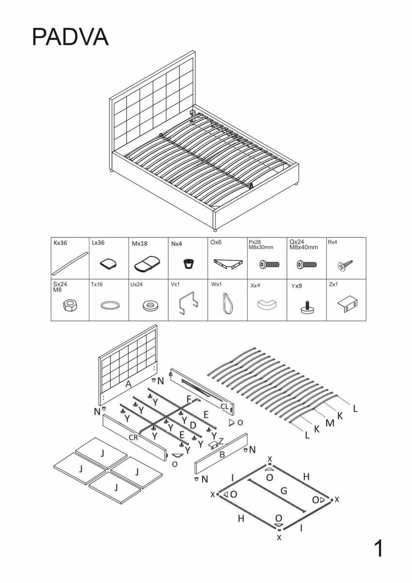 Кровать HALMAR PADVA 160 серый информация: