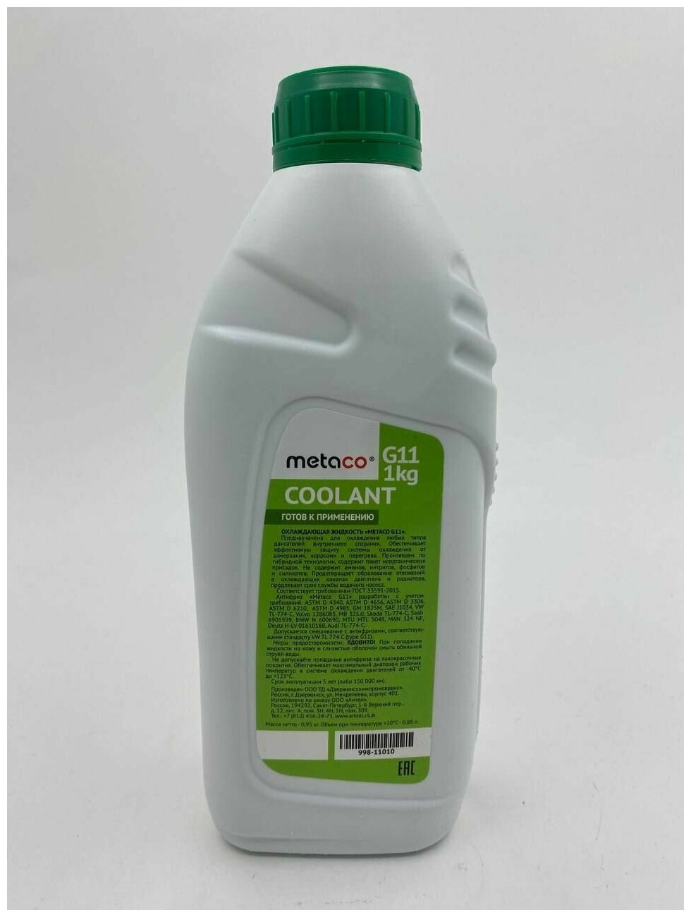 Антифриз зелёный G11 Metaco 1л. LADA; CHERY; DAEWOO информация:
