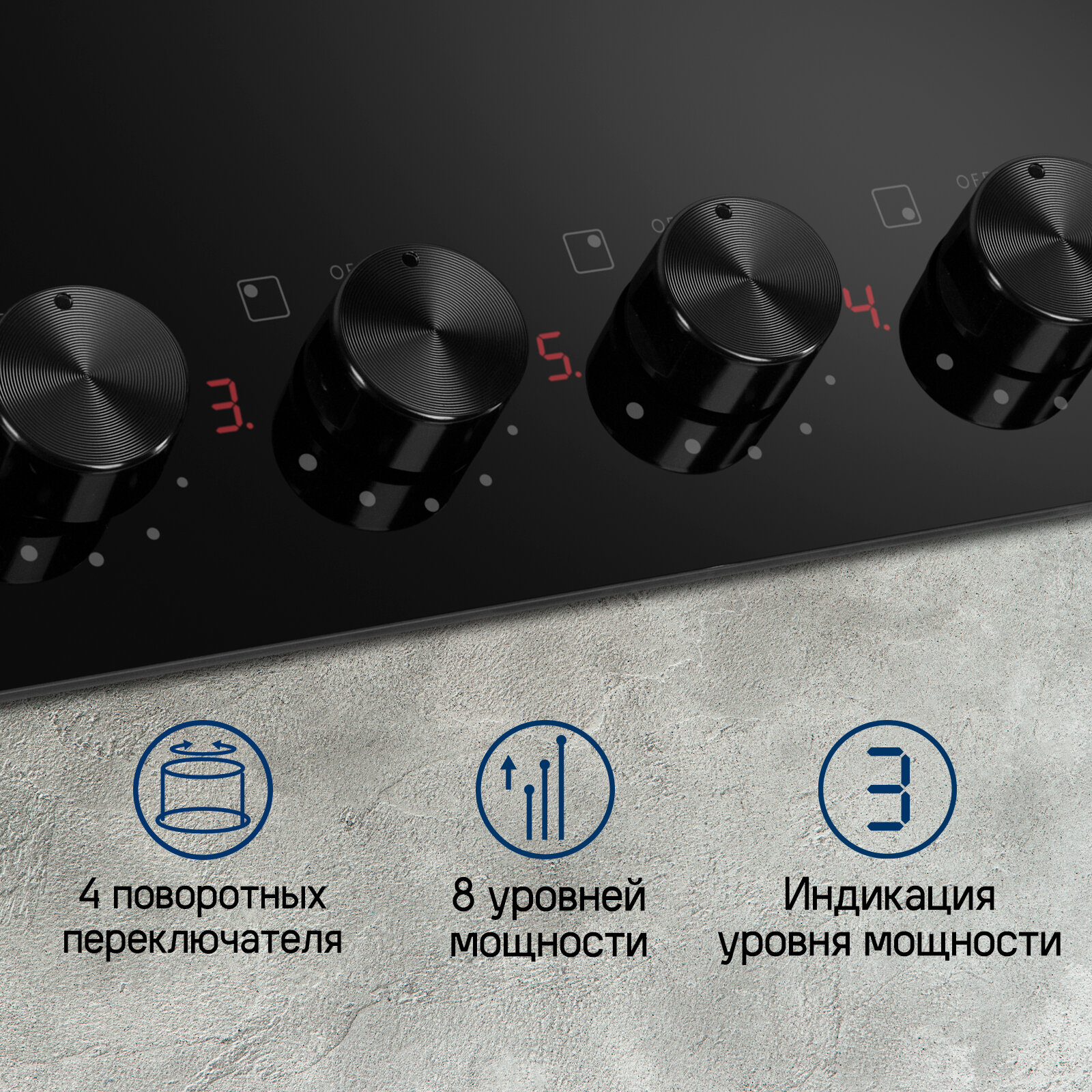Электрическая варочная панель MAUNFELD CVCE594MBK2, 6000 Вт, 8 уровней мощности, черная информация: