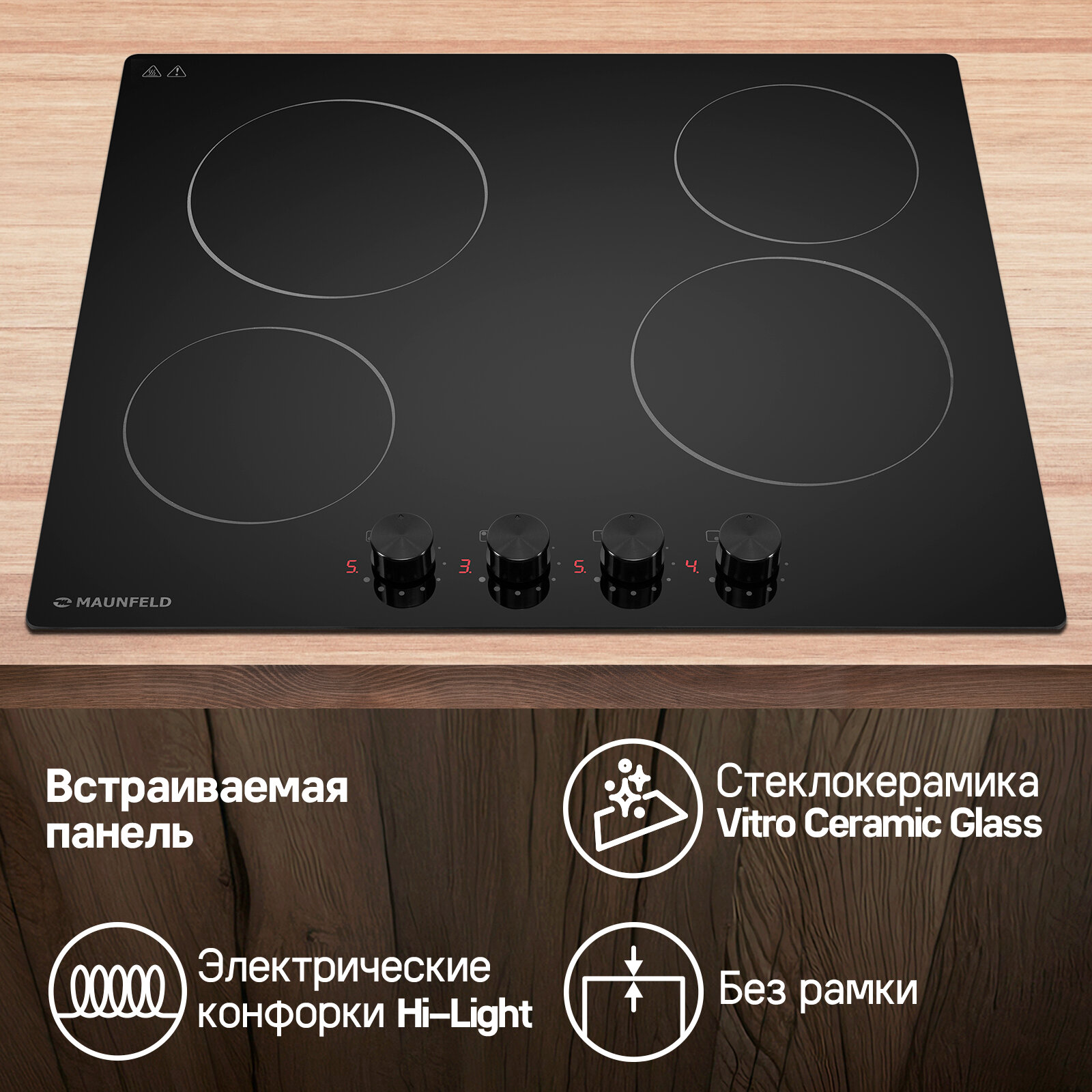 Отзывы на Электрическая варочная панель MAUNFELD CVCE594MBK2, 6000 Вт, 8 уровней мощности, черная