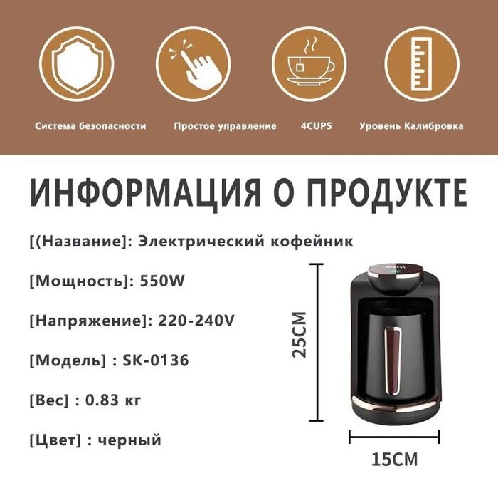 Турка электрическая для приготовления кофе по турецки, кофемашина