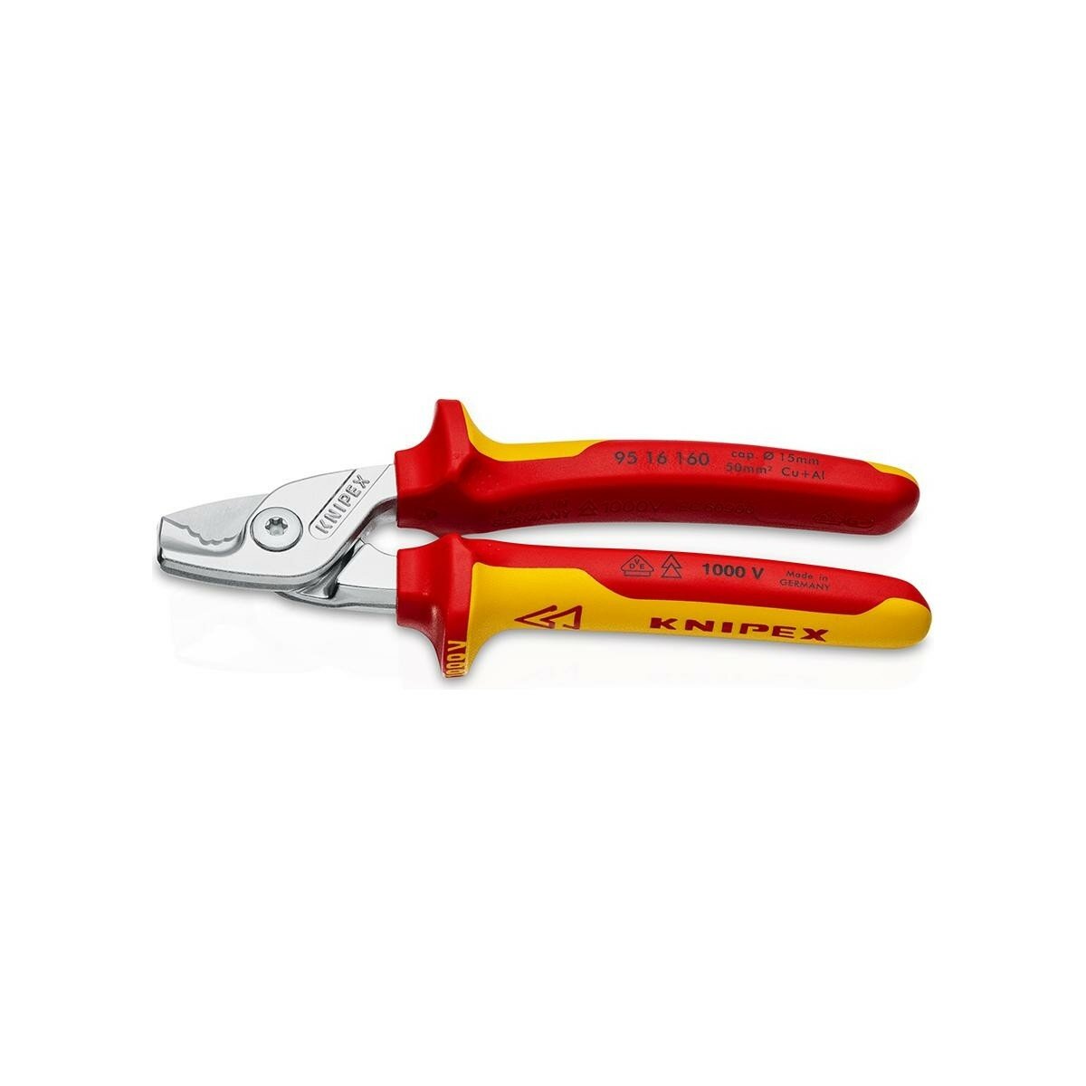 Кабелерез KNIPEX StepCut VDE, ступенчатый рез, d 15 мм (50 кв. мм.), 160 мм, 2-комп диэлектрические ручки KN-9516160 10 520 ₽