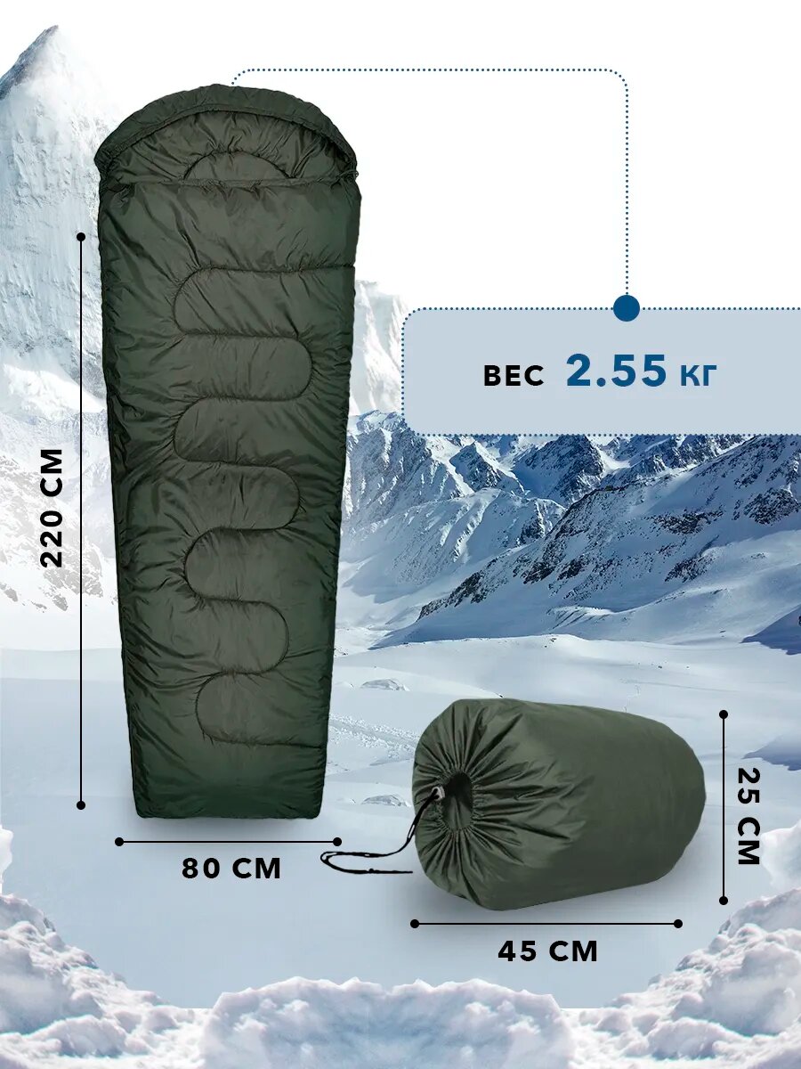 Спальный мешок туристический 220х80 см, зимний, до -25, темно-зеленый информация: