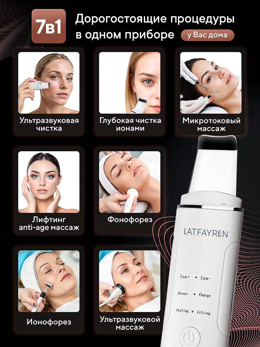 10 цен на LATFAYREN Ультразвуковая чистка для лица аппарат скраббер 28 000Гц