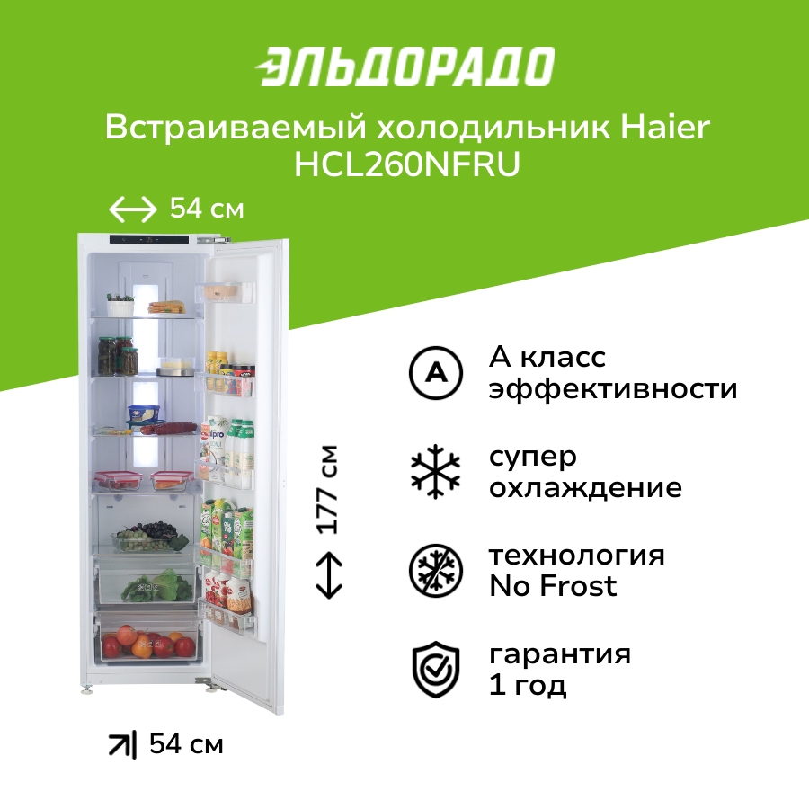 Встраиваемый холодильник однодверный Haier HCL260NFRU информация: