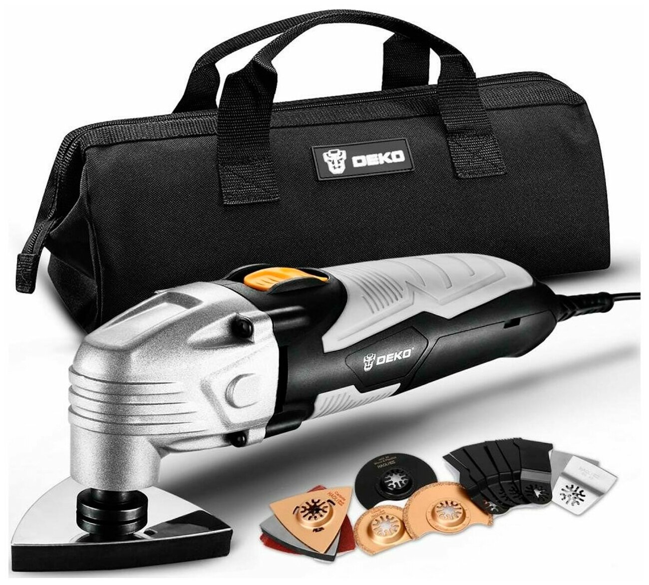 Отзывы на Многофункциональный инструмент сетевой DEKO DKOT500 в сумке+набор предметов 38 шт. [063-4274]