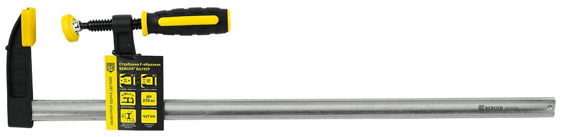 Струбцина F-образная Berger 80x600мм, зажим до 270 кг BG1939 информация: