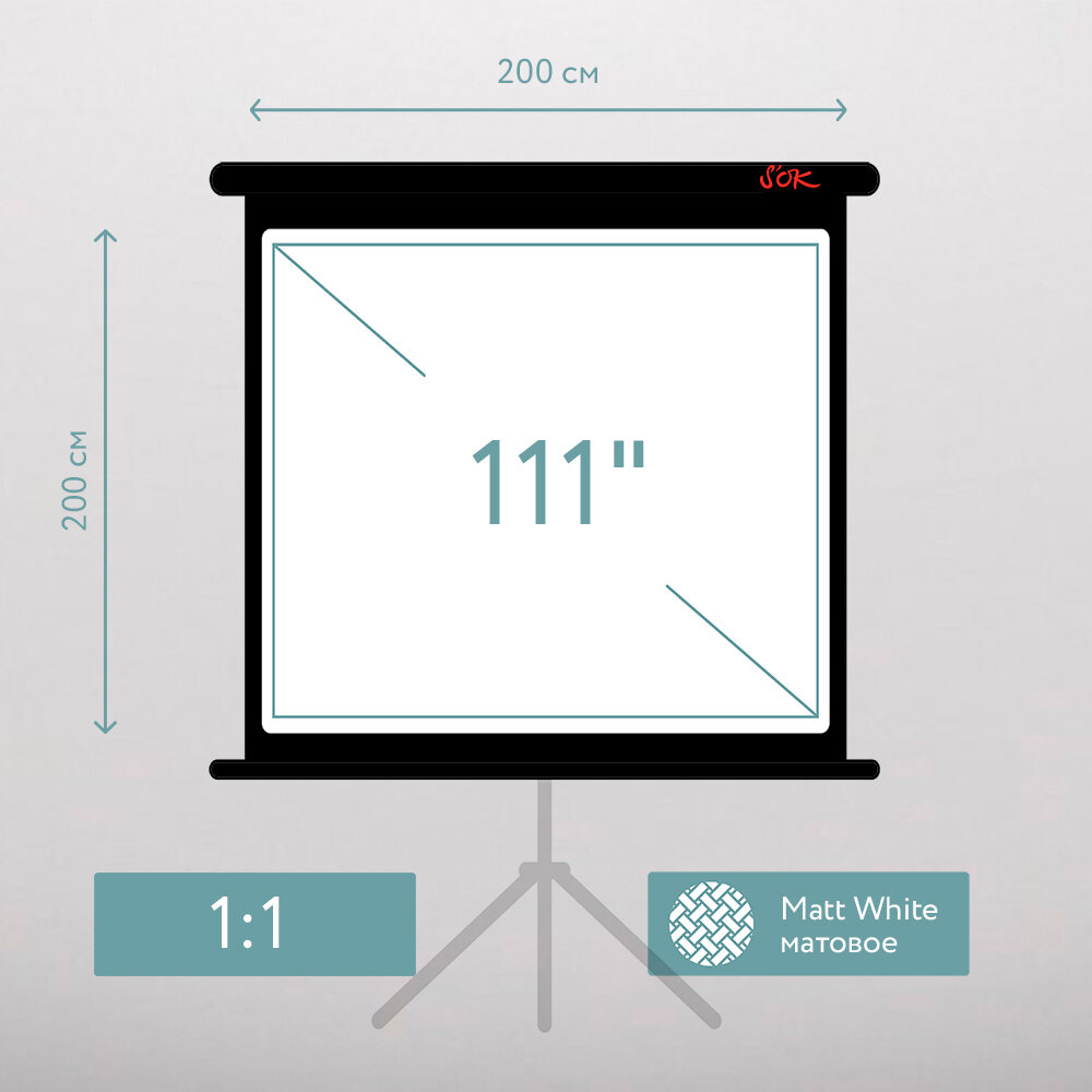Экран для проектора SOK SCPST-200x200BLCK 111 1:1 напольный, на треноге, матовый, черный информация: