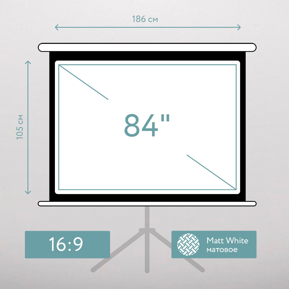 Экран для проектора S'OK SCPST-186x105(Triscreen) 84'' 16:9 напольный, на треноге, Matt White, белый корпус информация: