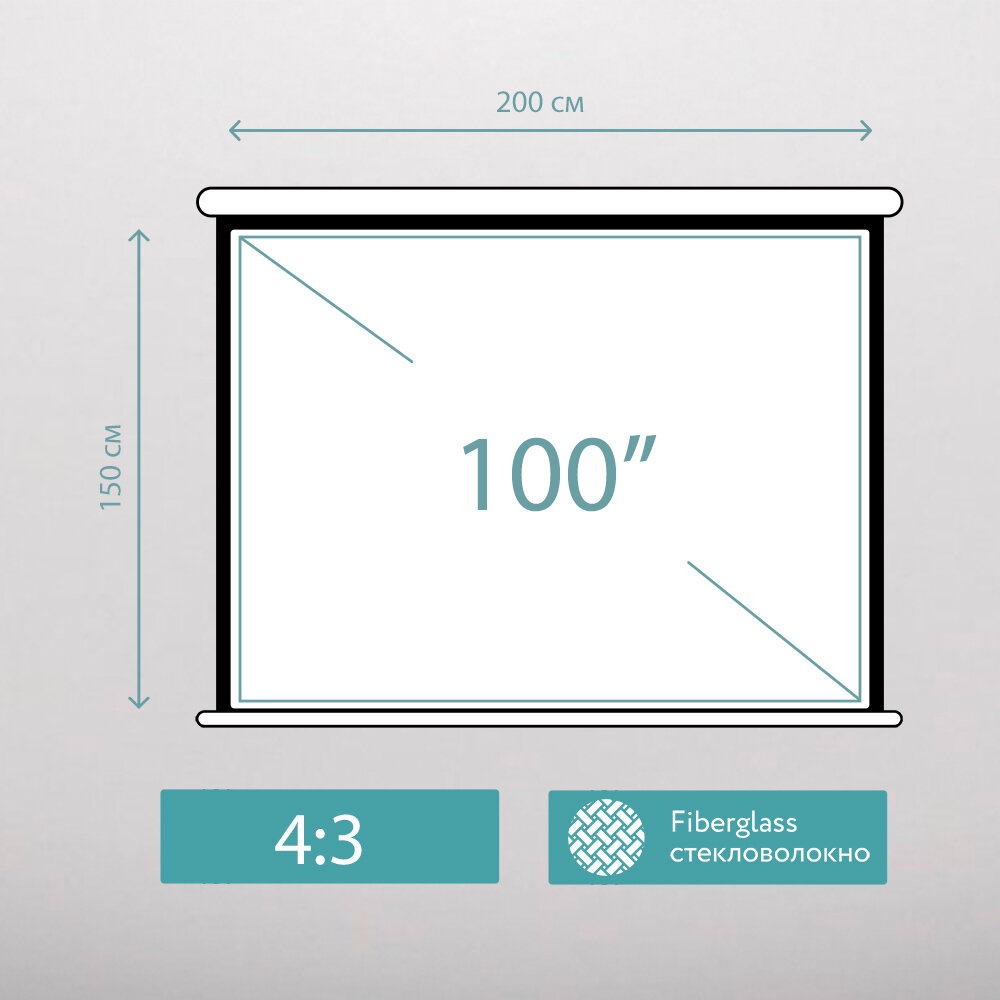 Экран SOK SCPSM-200x150FG Pro 100 4:3 настенно-потолочный, моторизованный, Fiberglass, белый информация: