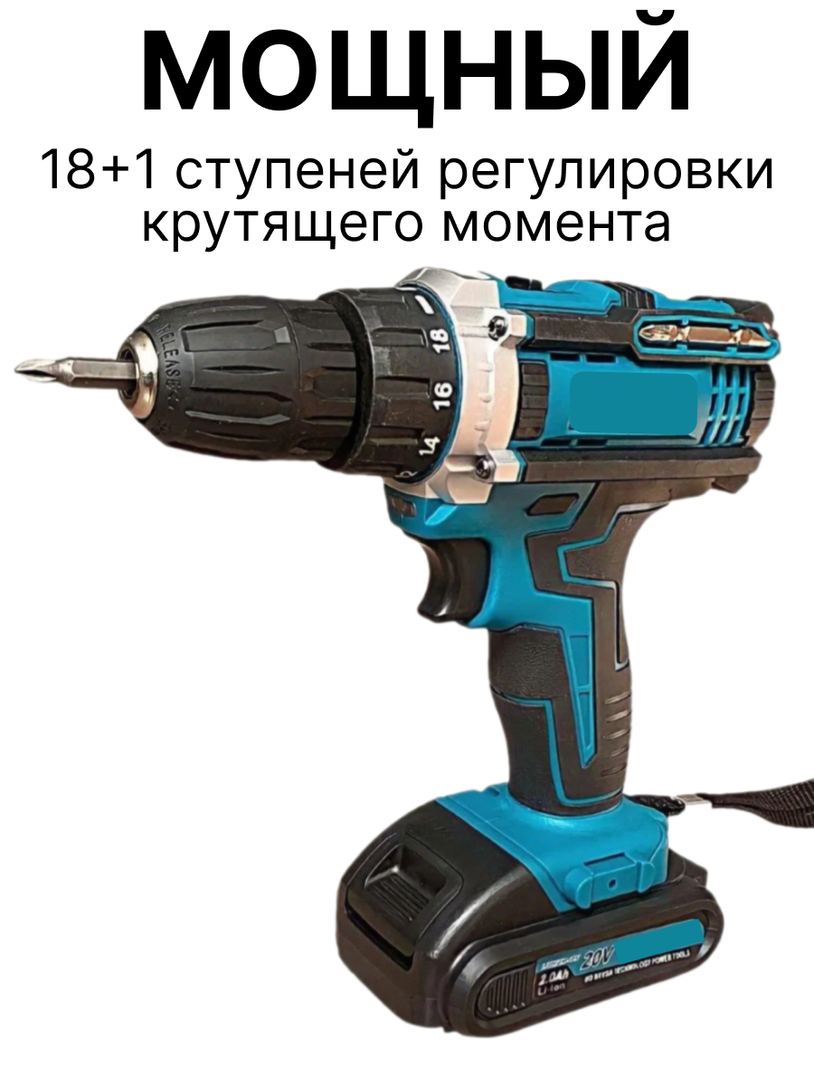 Дрель шуруповерт аккумуляторный MAGNET 20В Li-Ion с набором инструментов