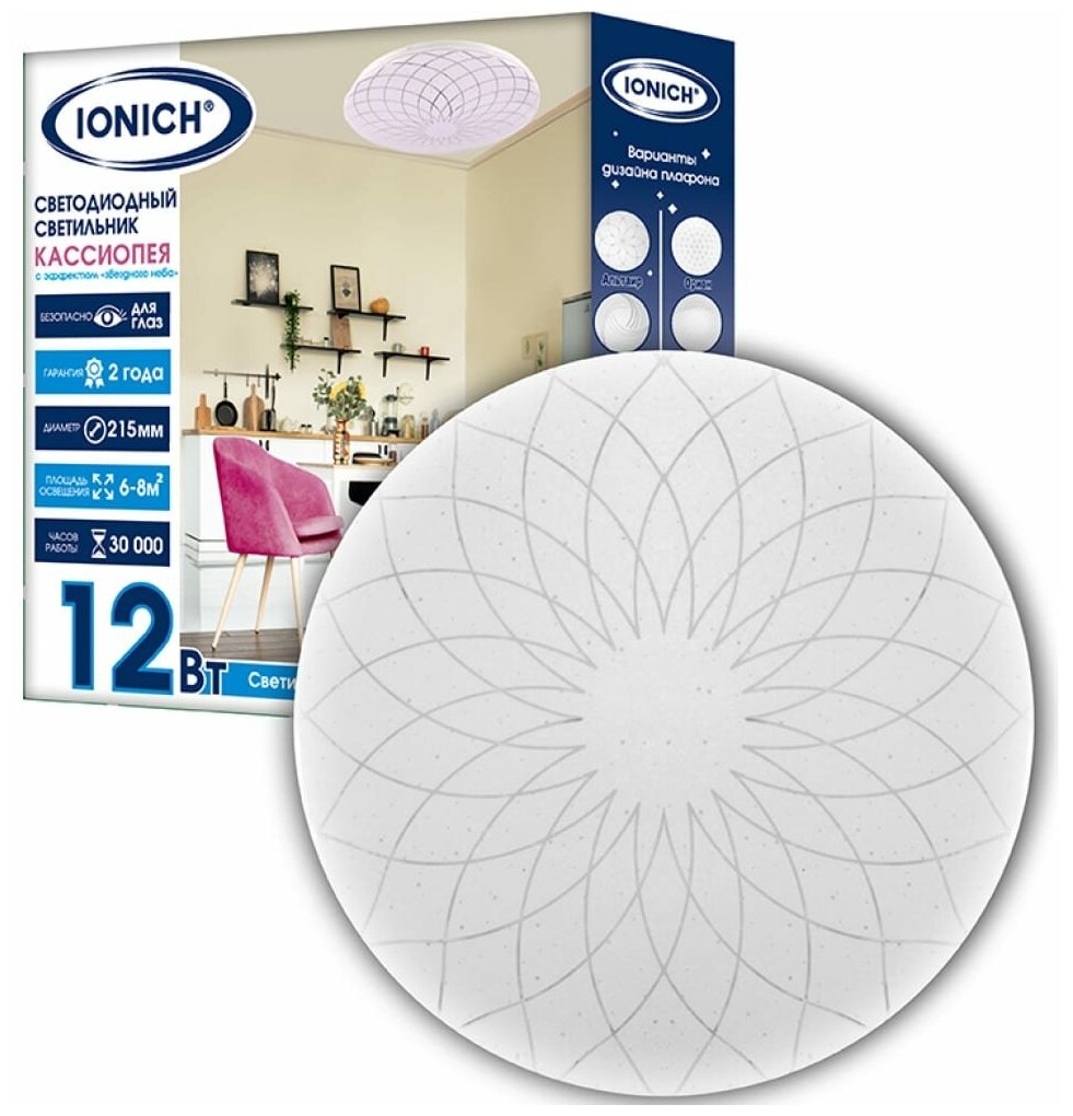 Свет. LED 12W 6500К Кассиопея 215мм 850Лм IP20 эффект звездное небо IONICH