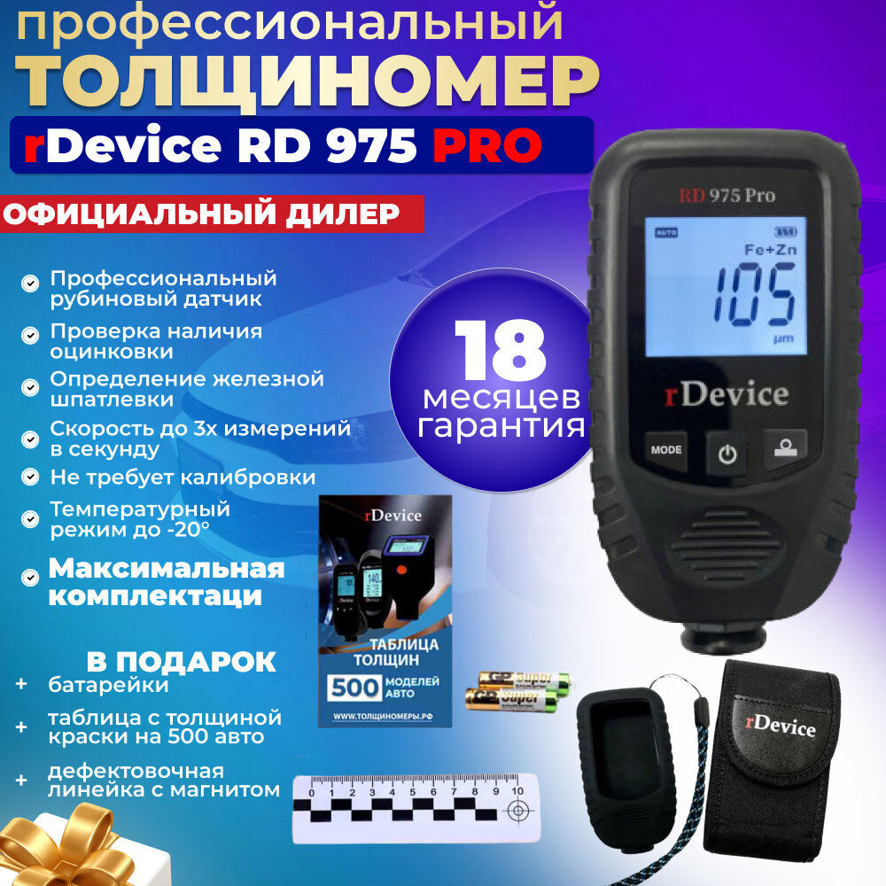 Отзывы на rDevice RD-975 PRO толщиномер все металлы, определение оцинковки, магнитной шпатлевки, турбо-замер, рубиновый датчик