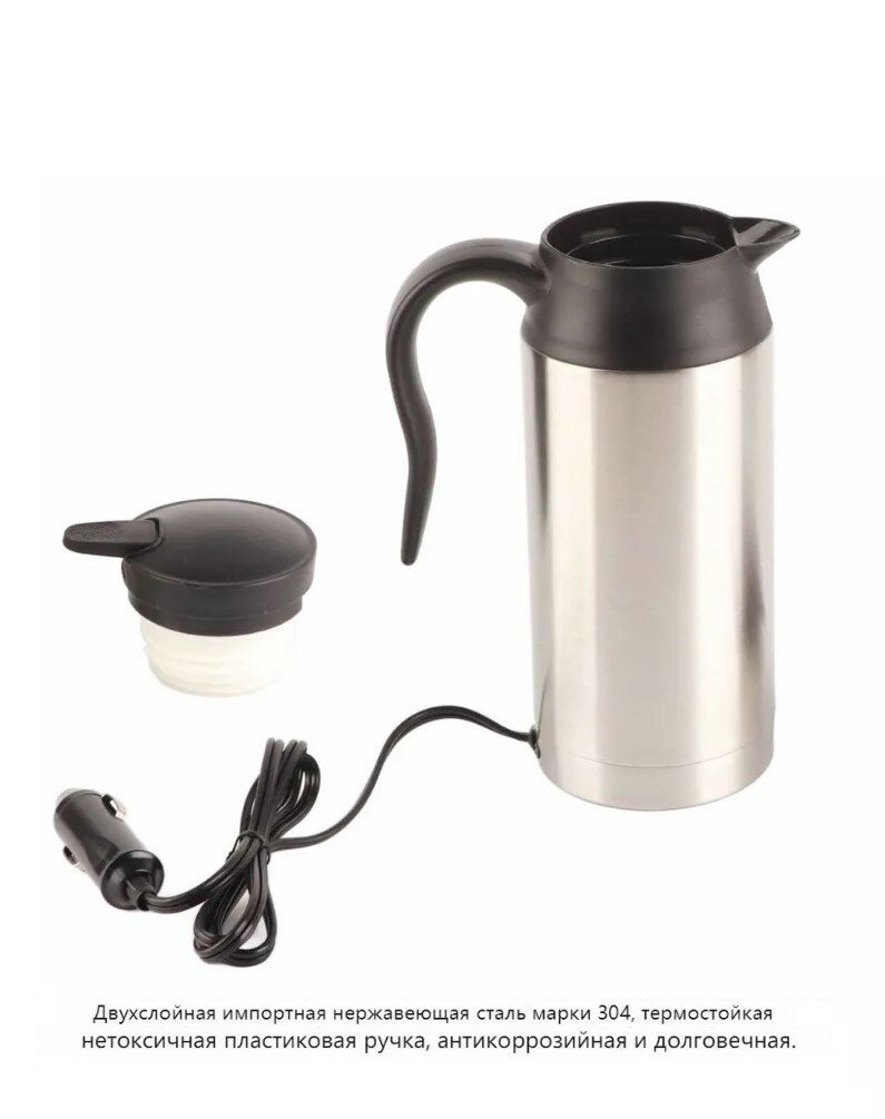 Автомобильный чайник, нержавеющая сталь, подогрев, герметичный, 750 мл информация: