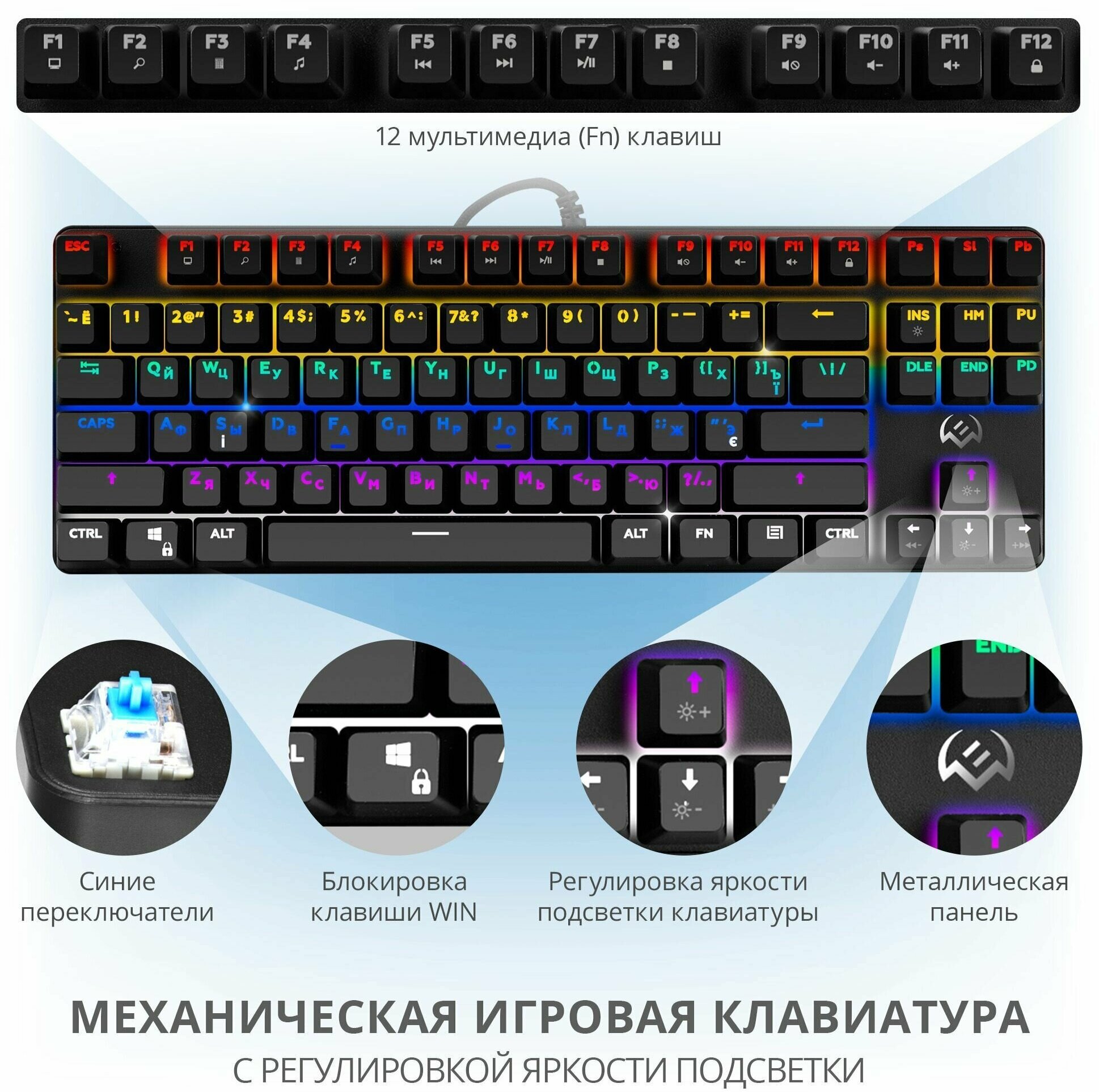 Клавиатура проводная SVEN KB-G9150 [SV-017651] [механическая Blue, клавиш - 87, USB, черная] информация: