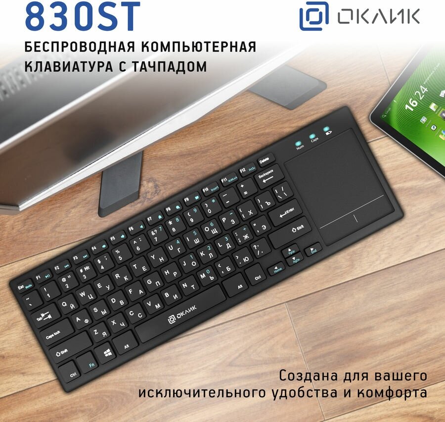Клавиатура с тачпадом Oklick Wireless Ultraslim 830ST информация: