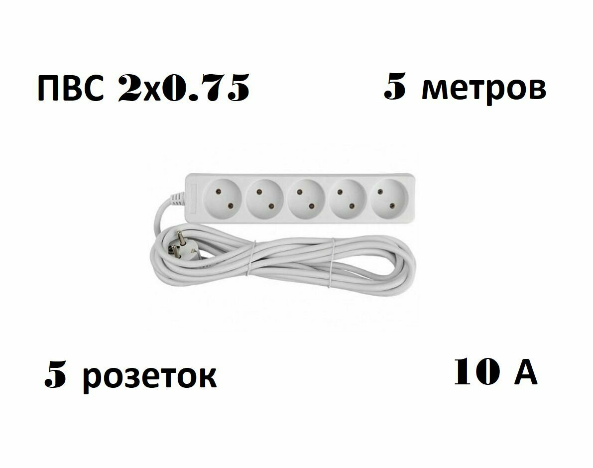 10 цен на General сетевой удлинитель ПВС 2х0.75 5 розетка 5 м 10А GES-10-2x075-5-5m 470033