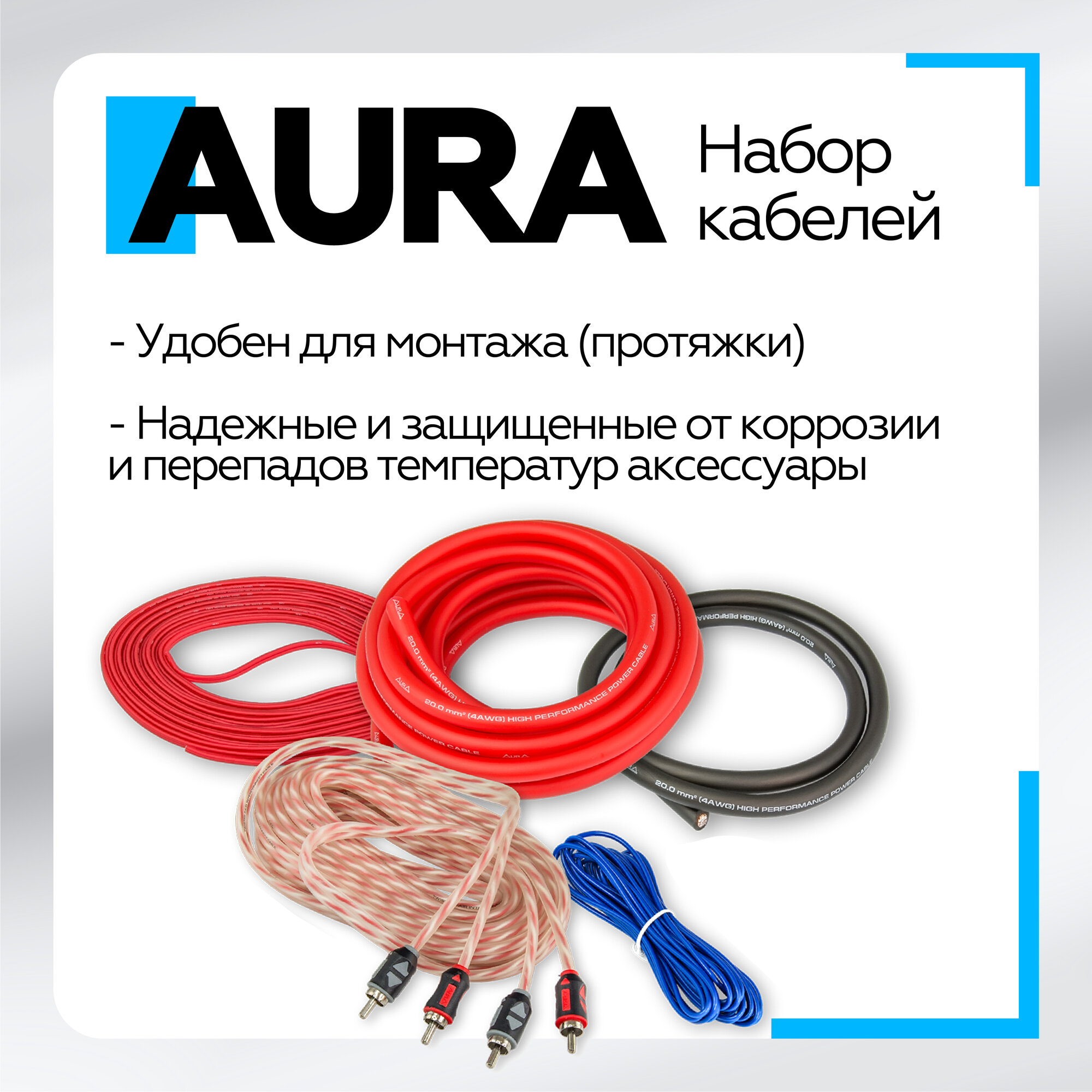 Комплект кабелей для усилителя 2х10мм2, AurA AMP-2208
