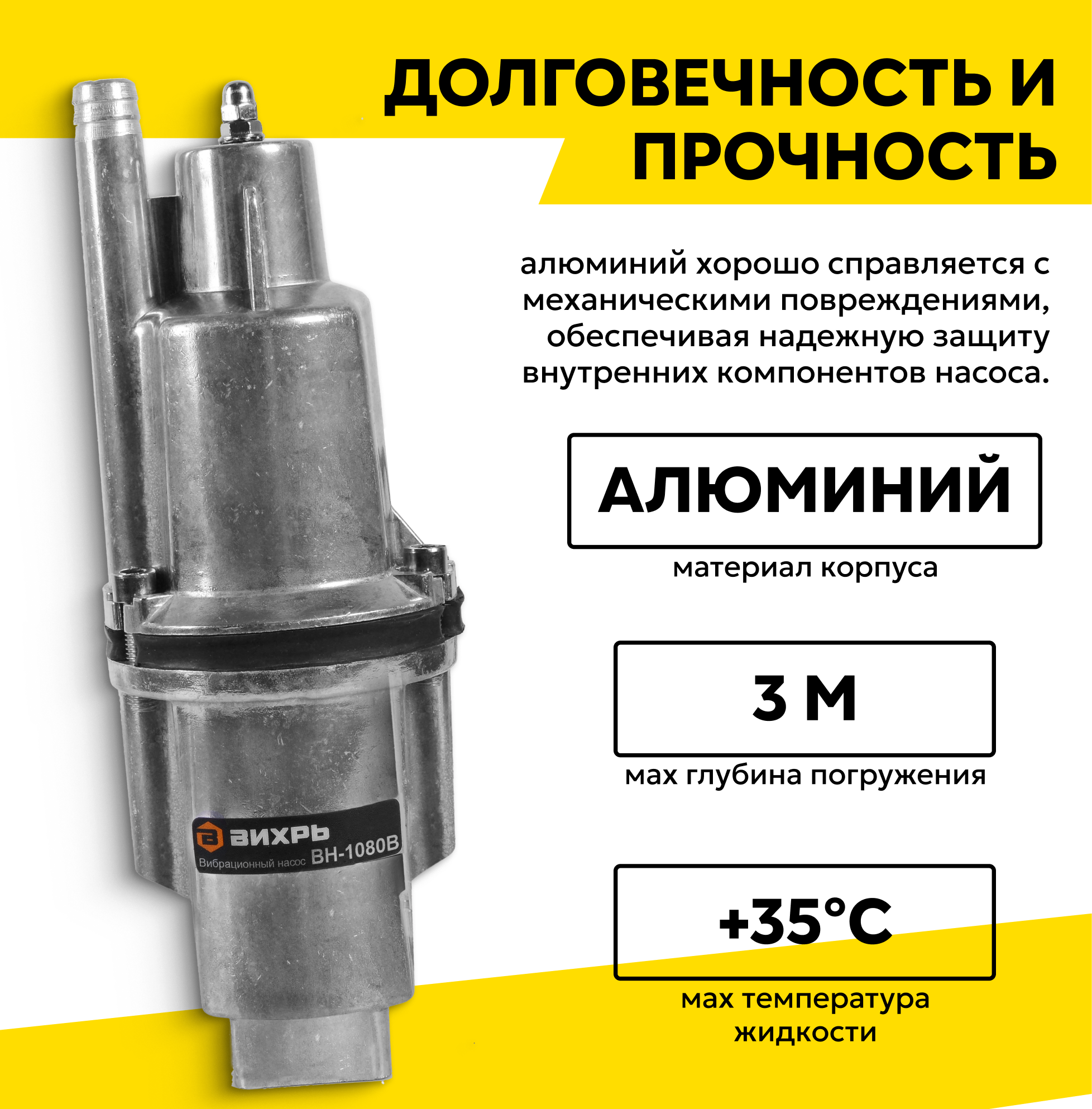 Отзывы на Вибрационный насос ВН-1080В Вихрь, высота подъема 72м, верхний забор воды, кабель 10м