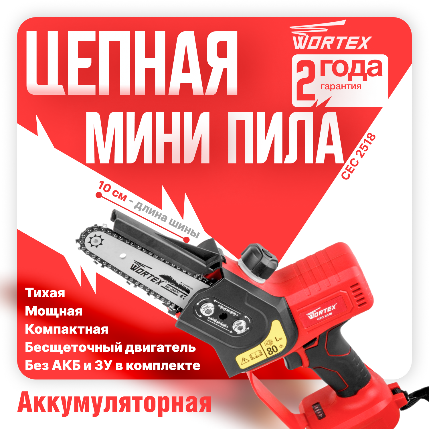 Пила цепная аккумуляторная WORTEX CEC 2518 ALL1 Без АКБ и З/У (0323166) информация: