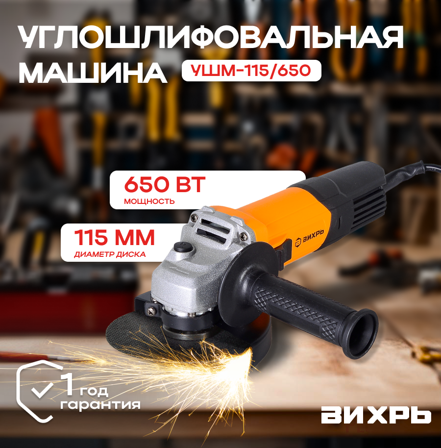 Отзывы на Углошлифовальная машина (болгарка) УШМ-115/650 Вихрь, 650 Вт, 115мм
