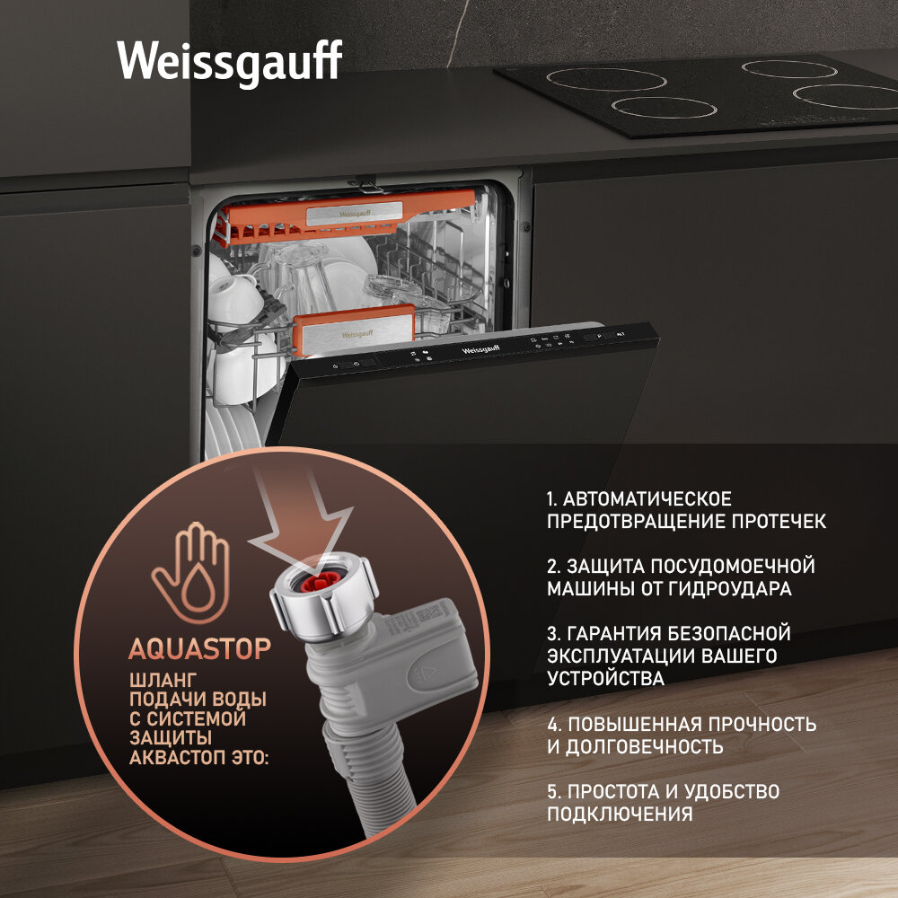Встраиваемая посудомоечная машина Weissgauff BDW 4535, 5 программ, Полная защита от протечек информация:
