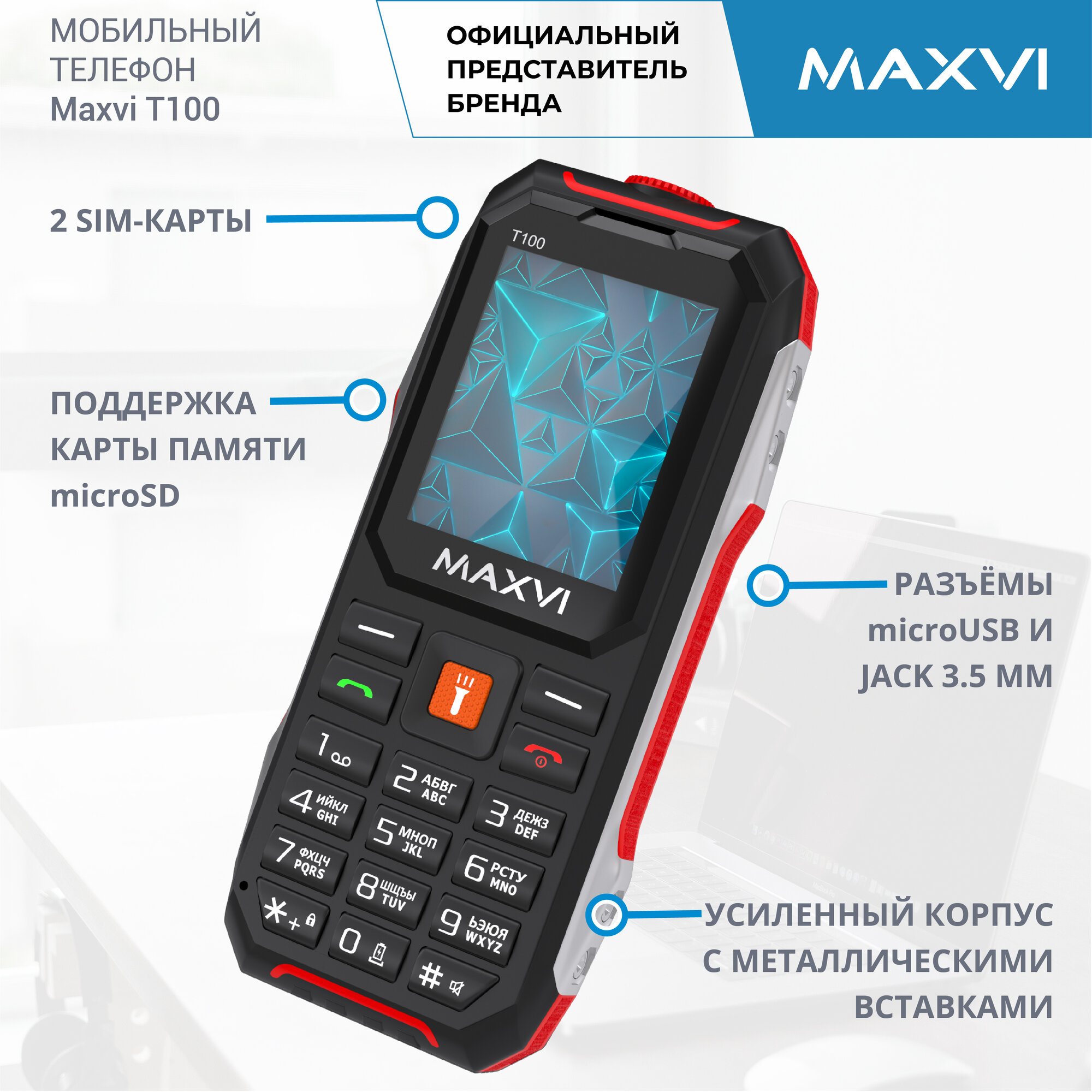 Телефон MAXVI T100, 2 SIM, черный/красный 1 490 ₽