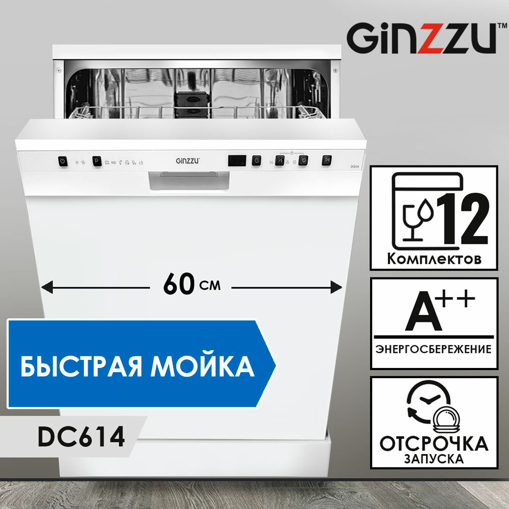 Посудомоечная машина Ginzzu DC614, отдельностоящая, конденсационная сушка, 12 комплектов, 6 программ информация: