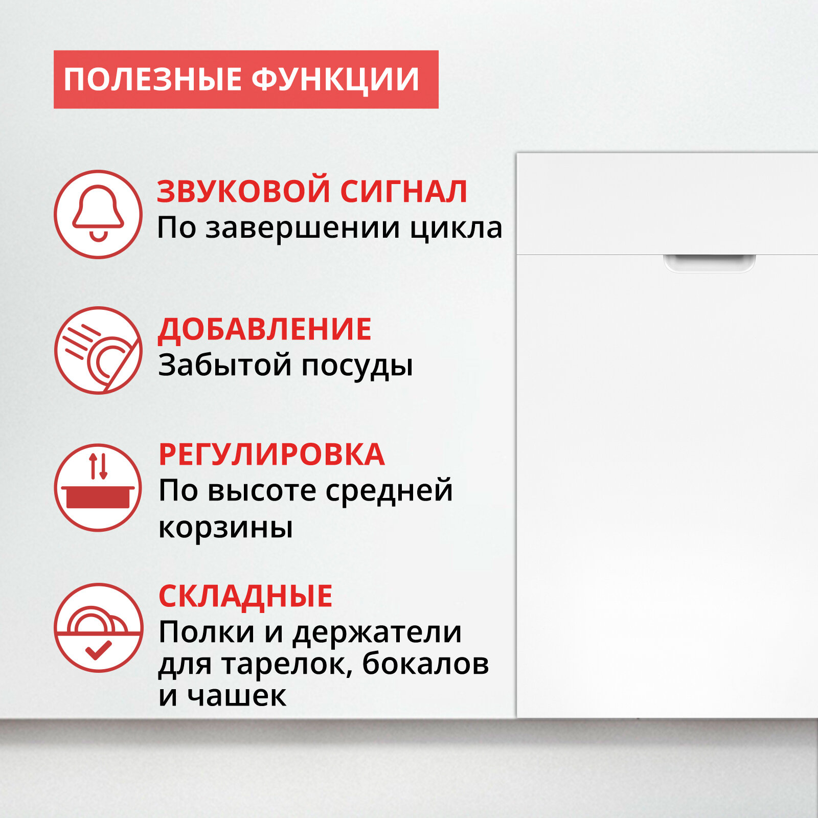 | Особенности конструкции | внутренняя поверхность из нержавеющей стали / дисплей / использование средств 3 в 1 / регулируемая по высоте корзина для посуды |