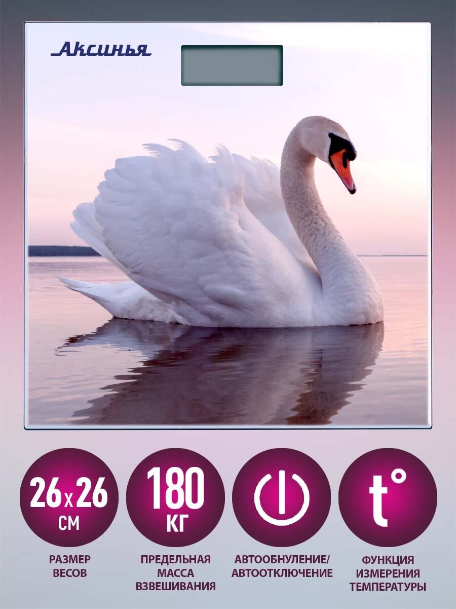 Весы напольные Аксинья КС-6010 "Белый лебедь" электронные, платформа из стекла, до 180 кг информация: