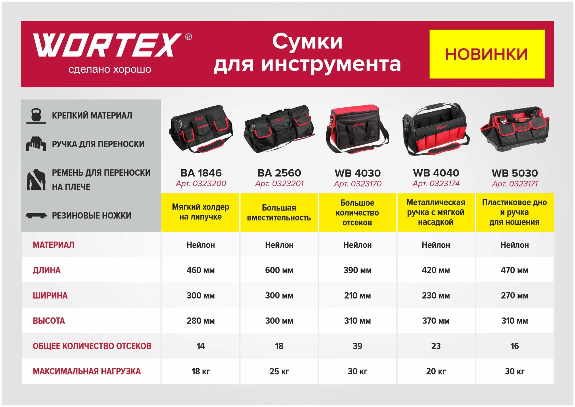 10 цен на Сумка для инструмента вес до 18 кг, 6 отсеков WORTEX BA 1846 (0323200)