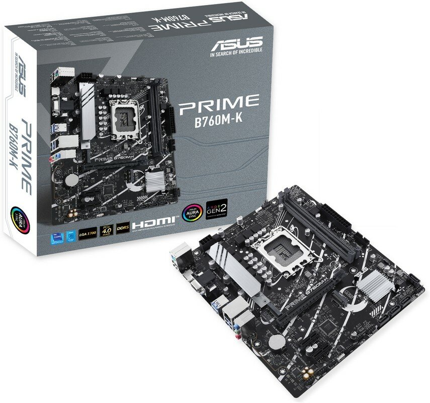 Материнская плата ASUS Prime B760M-K B760 Socket-1700 2xDDR5, 4xSATA3, RAID, 2xM.2, 1xPCI-E16x, 4xUSB3.2, D-Sub, HDMI, 2,5Glan, mATX
