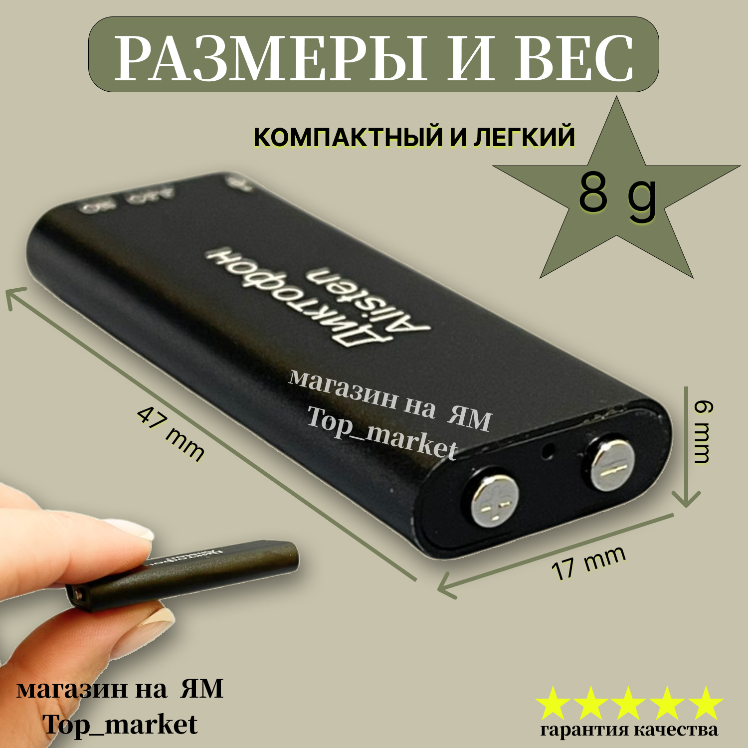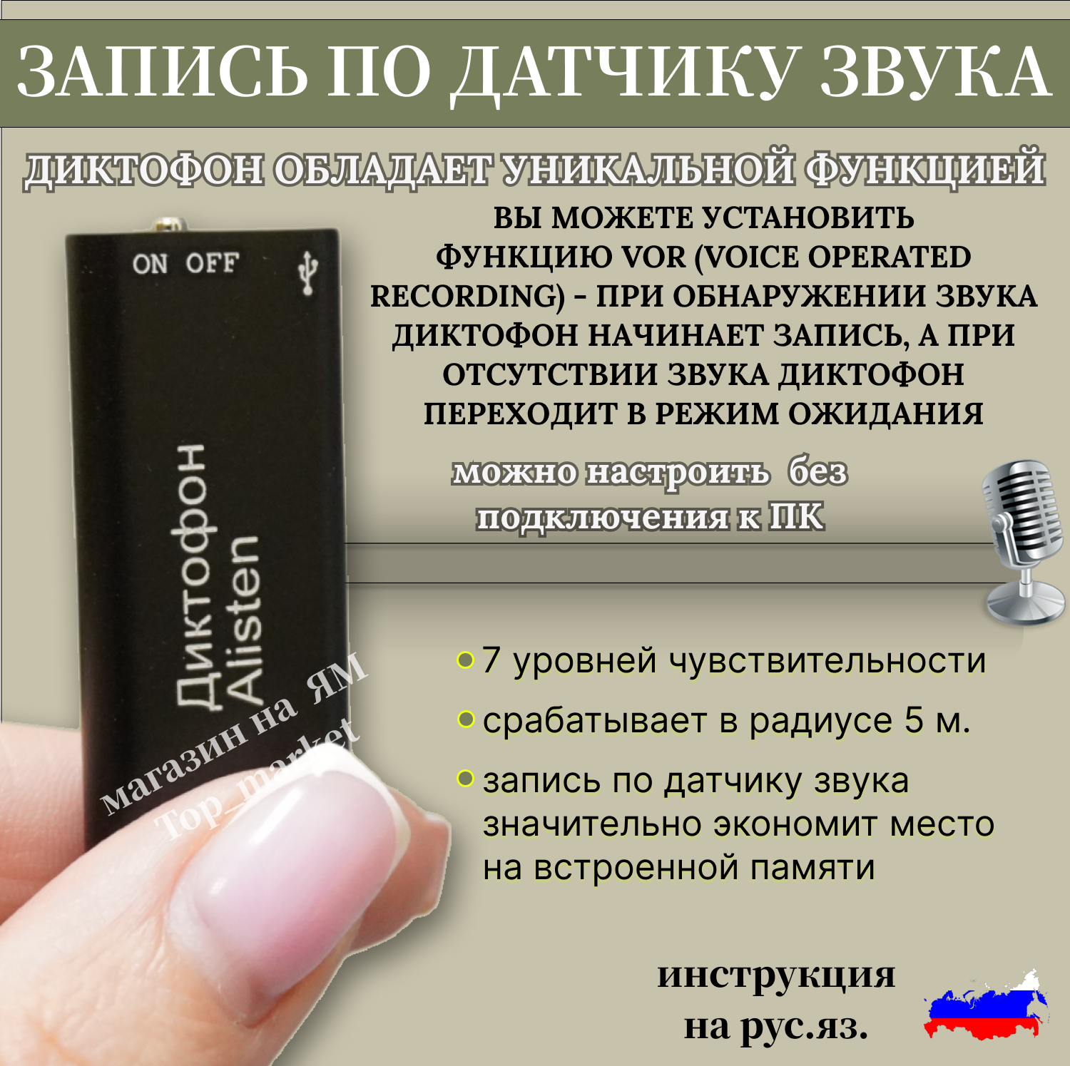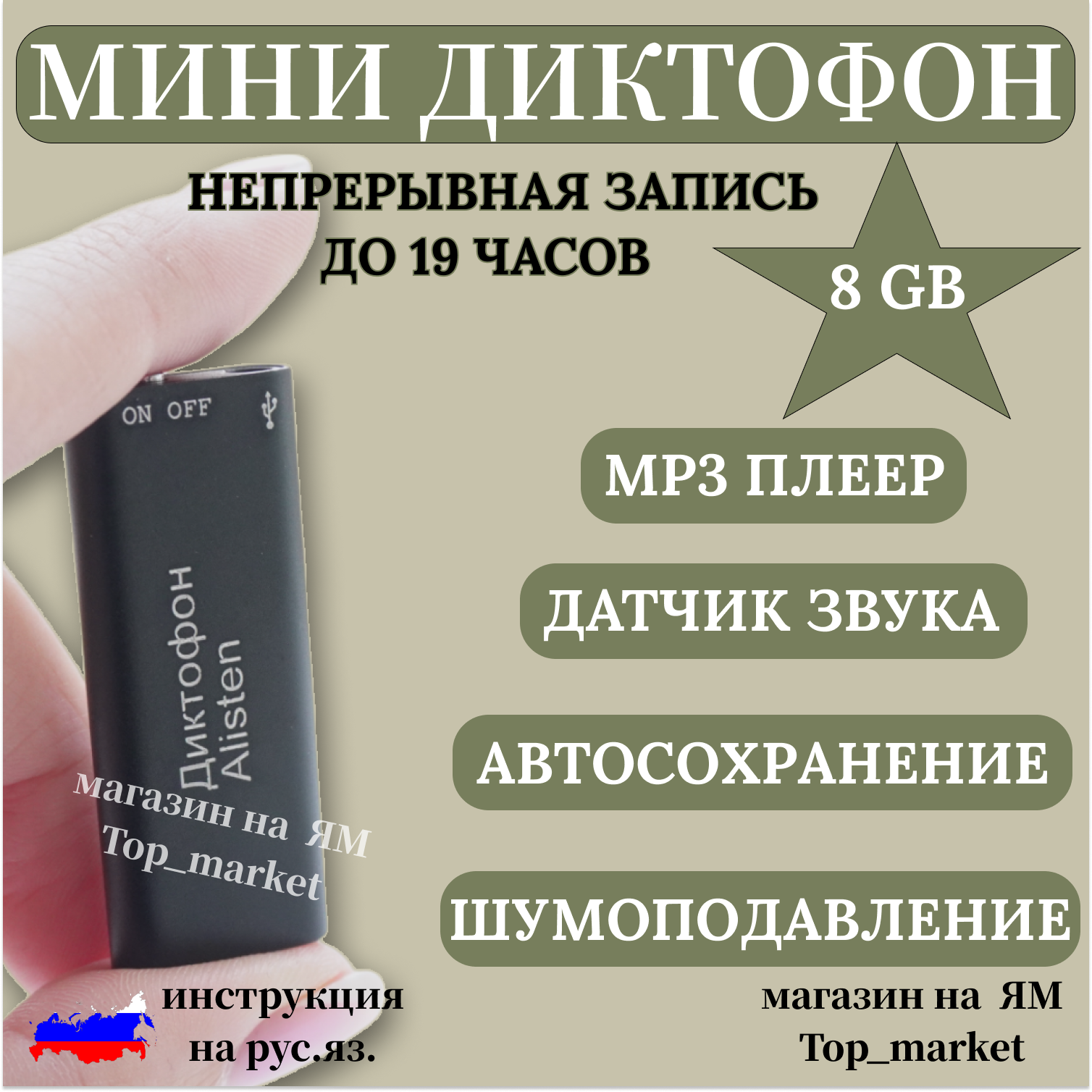 Профессиональный мини диктофон Alisten со встроенной памятью 8GB запись/ сохранит непрерывно до 19 часов записи, запись во время зарядки, датчик звука, шумоподавление информация: