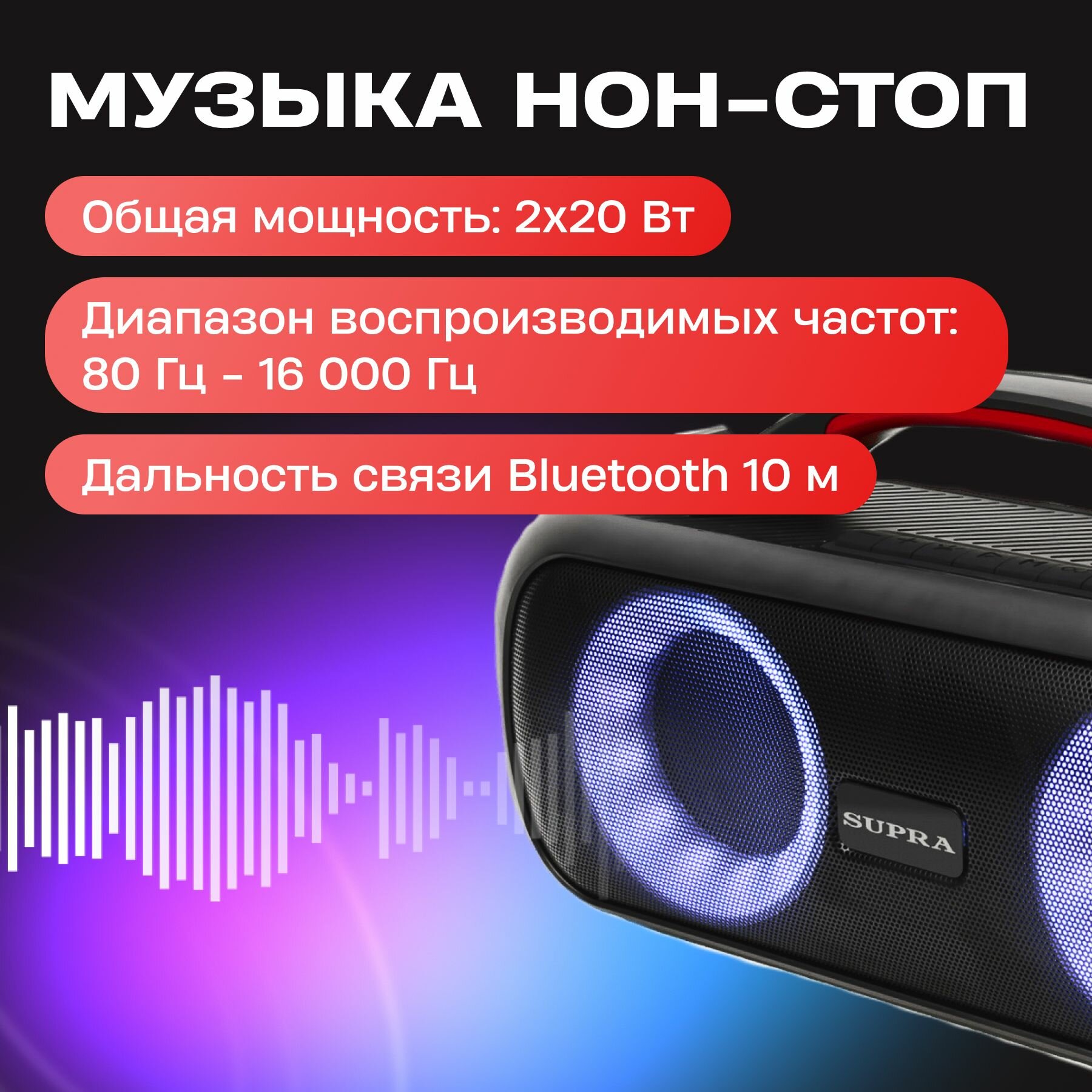 10 цен на Беспроводная колонка SUPRA BTS-710, 40Вт, bluetooth, FM радио, подсветка, черный