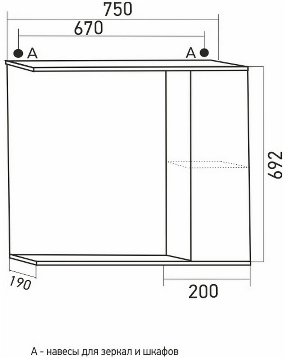Шкаф навесной "АНРИ-75 правый без подсветки (ПВХ) информация: